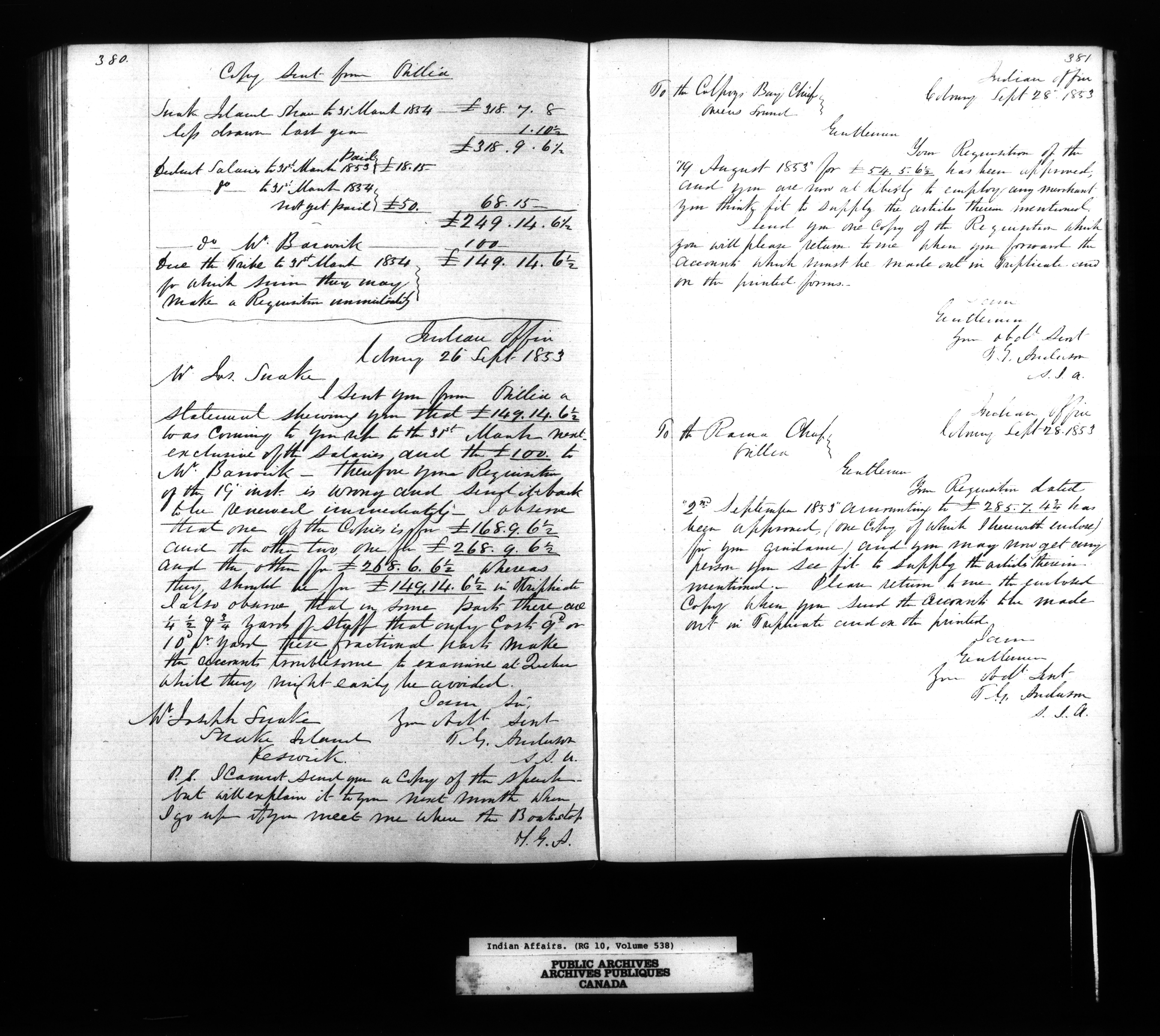 Department of Indian Affairs, Toronto office of the Central Superintendency : letterbooks : C-13356