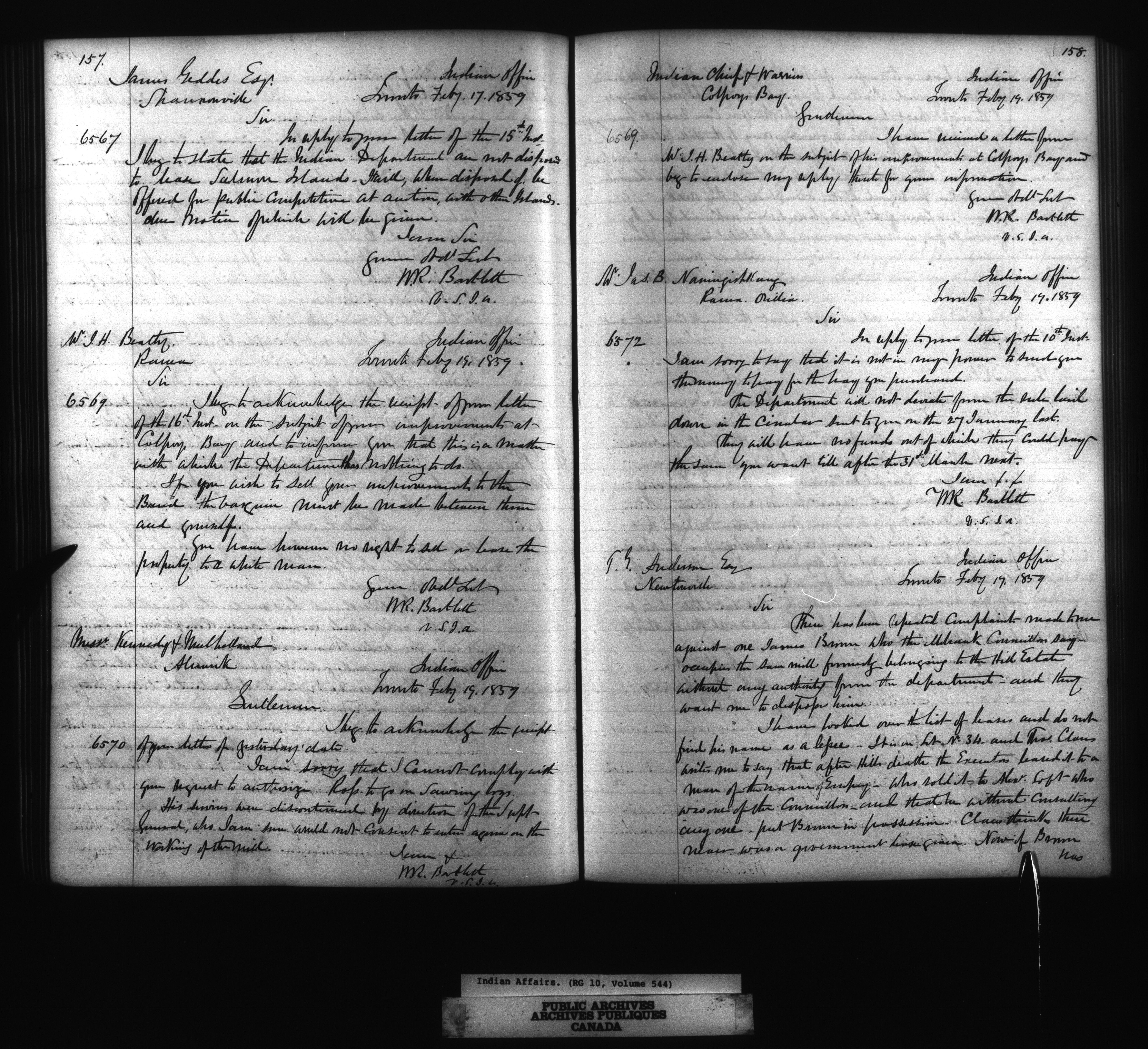 Department of Indian Affairs, Toronto office of the Central Superintendency : letterbooks - 13357