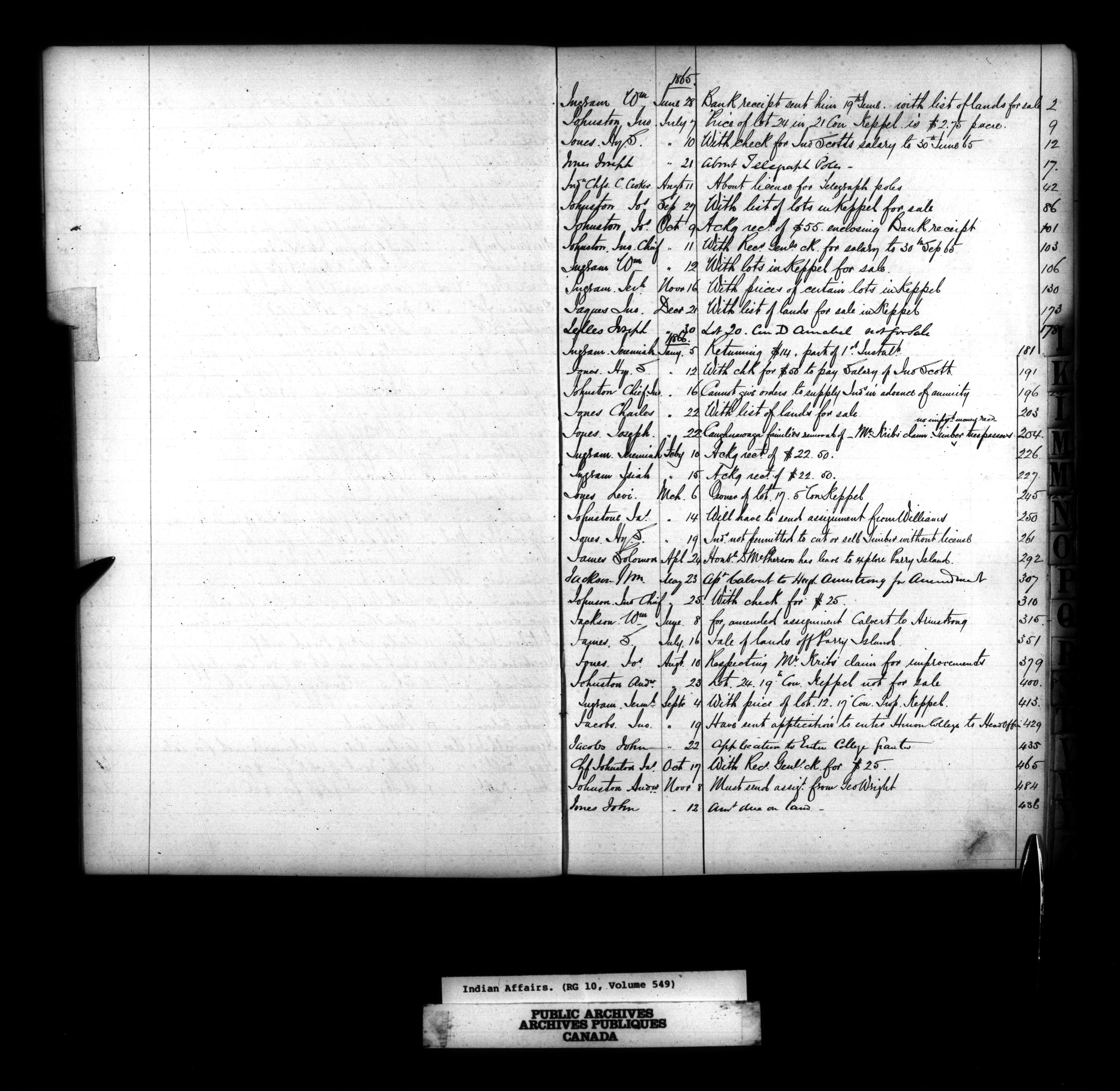 Department of Indian Affairs, Toronto office of the Central Superintendency : Superintendent William R. Bartlet's Indexed letterbooks - 13359