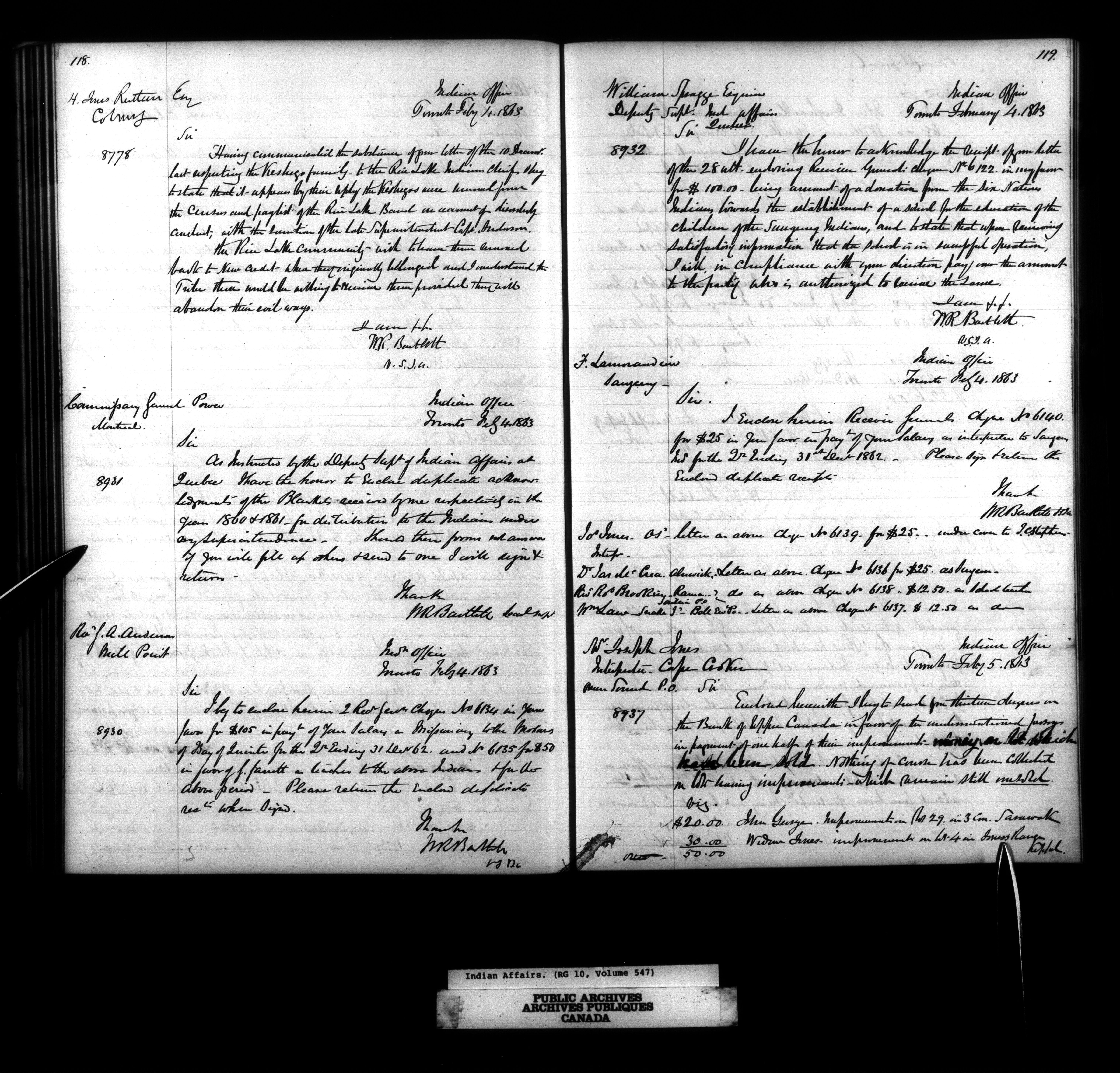 Department of Indian Affairs, Toronto office of the Central Superintendency : Superintendent William R. Bartlet's Indexed letterbooks - 13359