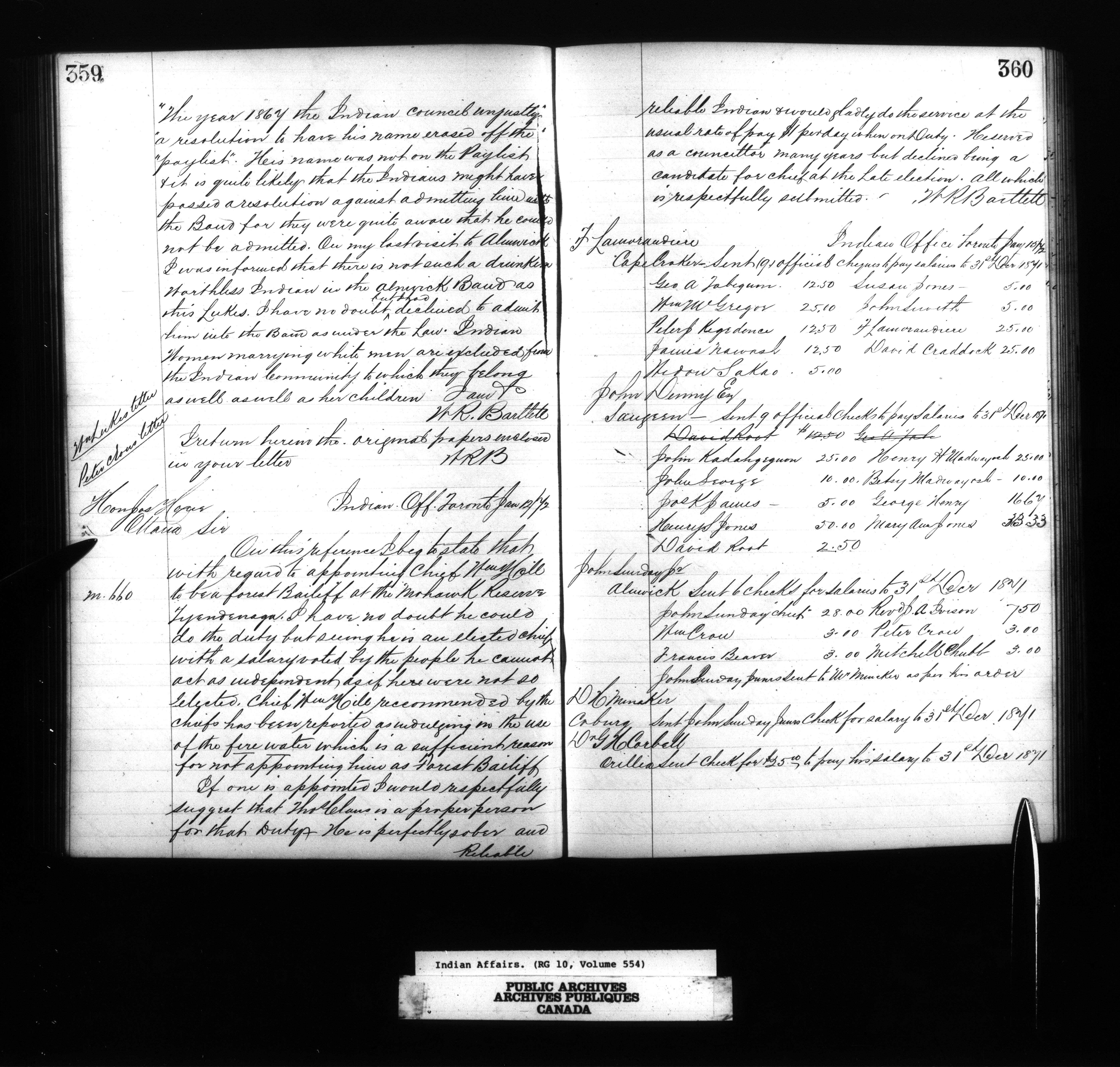 Department of Indian Affairs, Toronto office of the Central Superintendency : Superintendent William R. Bartlet's Indexed letterbooks - 13362