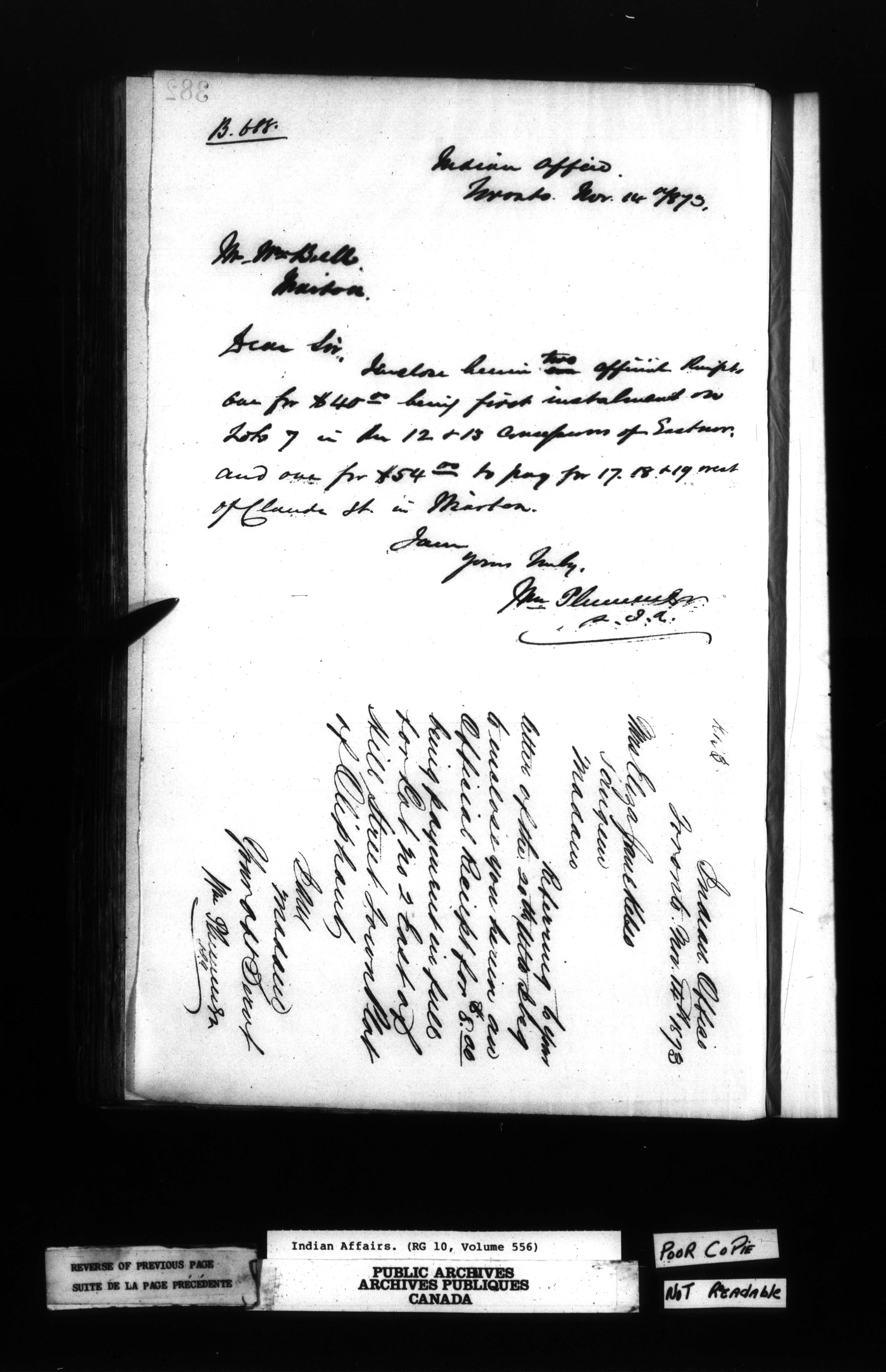 Department of Indian Affairs, Toronto office of the Central Superintendency : Superintendent William R. Bartlet's Indexed letterbooks - 13362