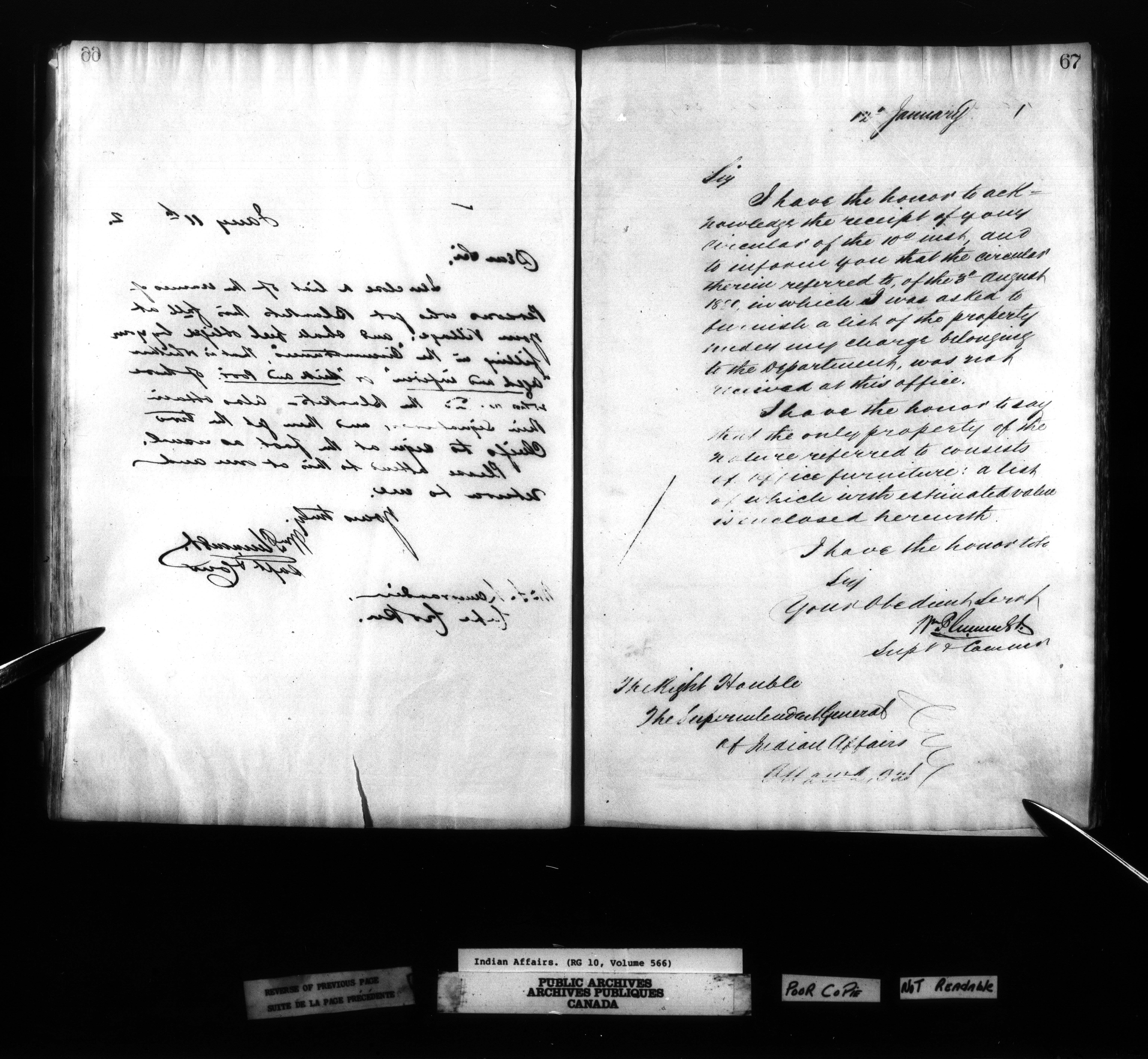 Department of Indian Affairs, Toronto office of the Central Superintendency : Superintendent William Plummer's Indexed letterbooks - 13371