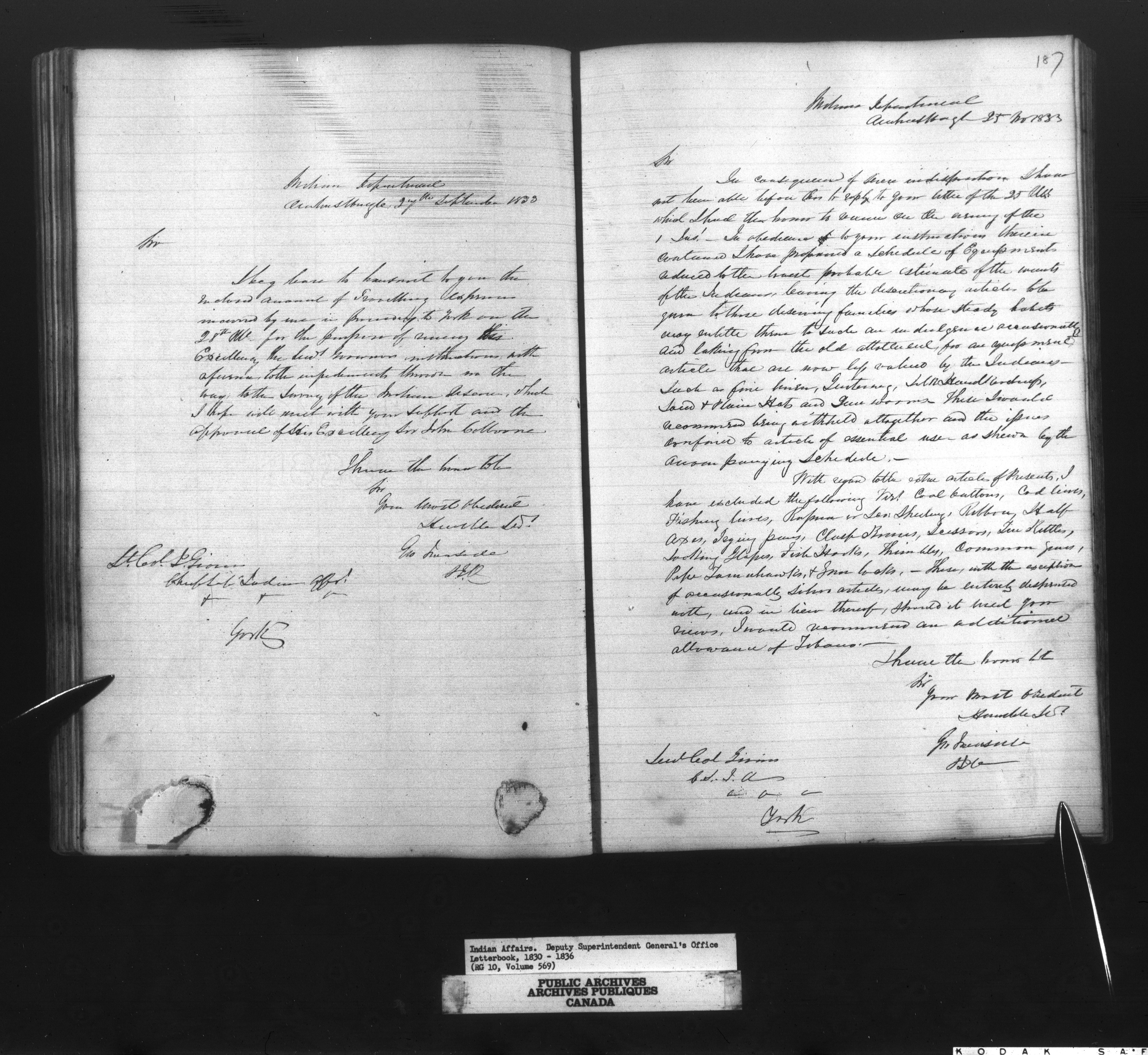 Department of Indian Affairs : Northern Superintendency Manitowaning and Western Superintendancy, letterbooks - 13373