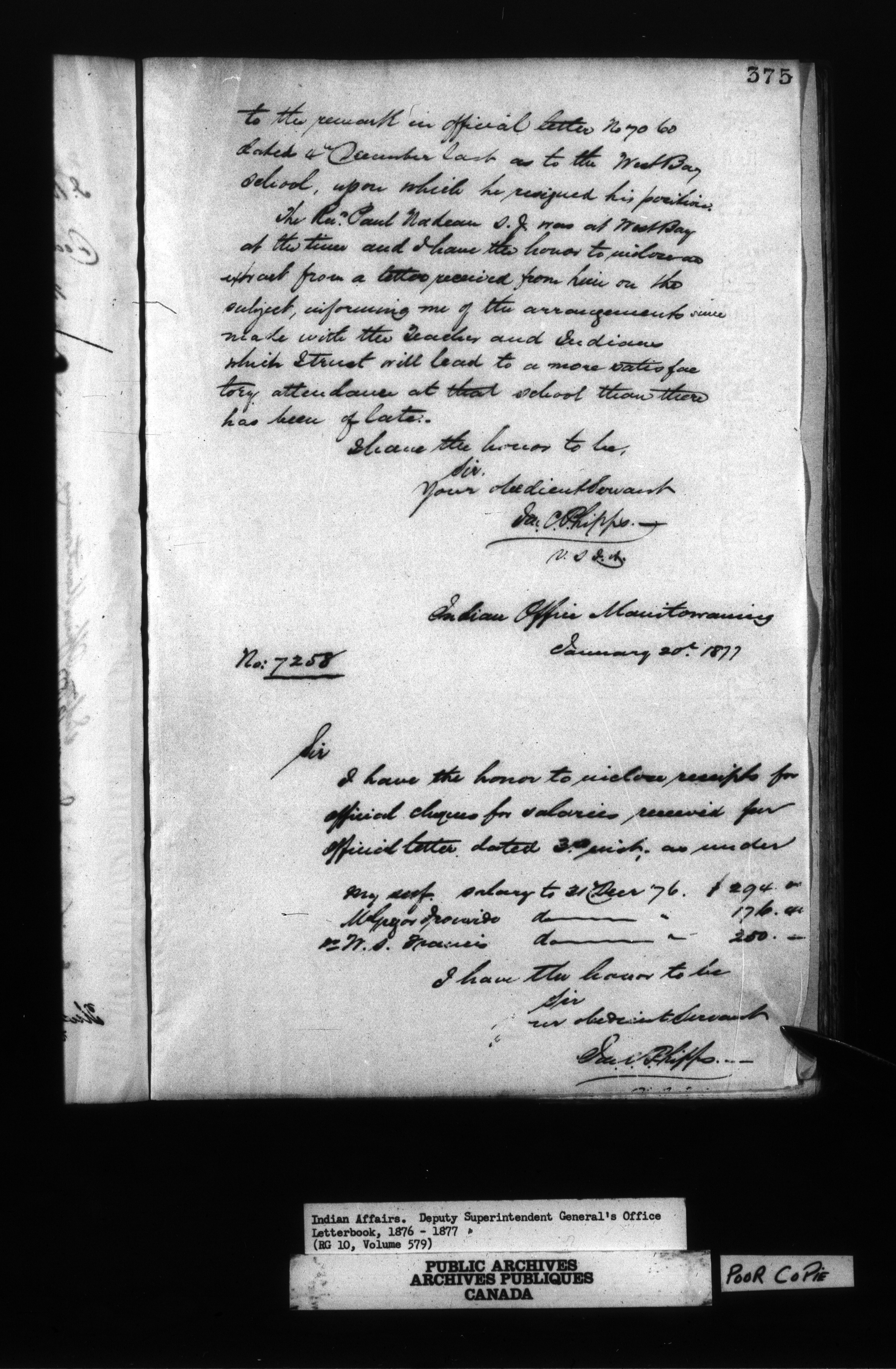 Department of Indian Affairs : Letterbooks of Superintendent, J. C. Phipps of Northern Superintendency Manitowaning - 13376