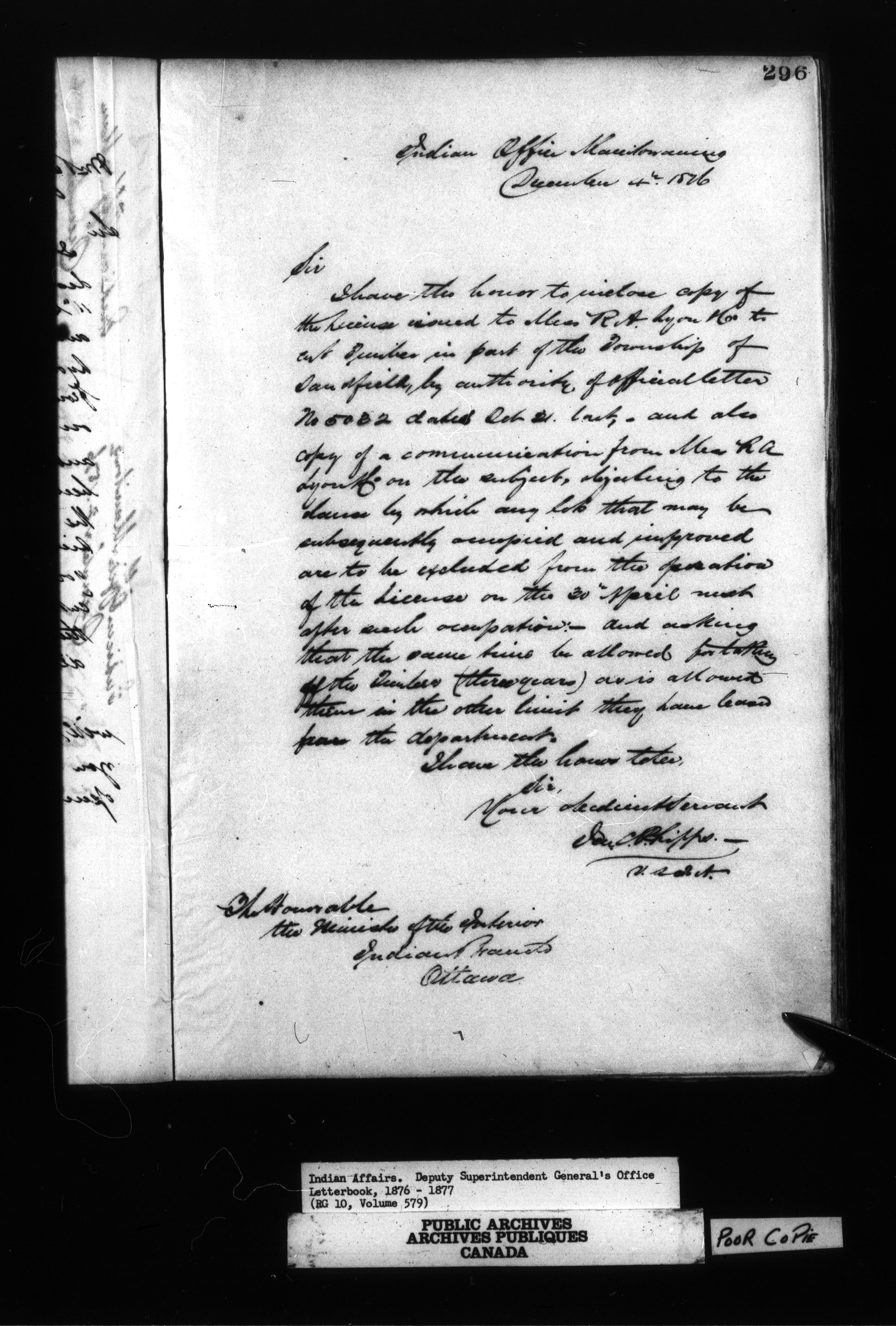 Department of Indian Affairs : Letterbooks of Superintendent, J. C. Phipps of Northern Superintendency Manitowaning - 13376