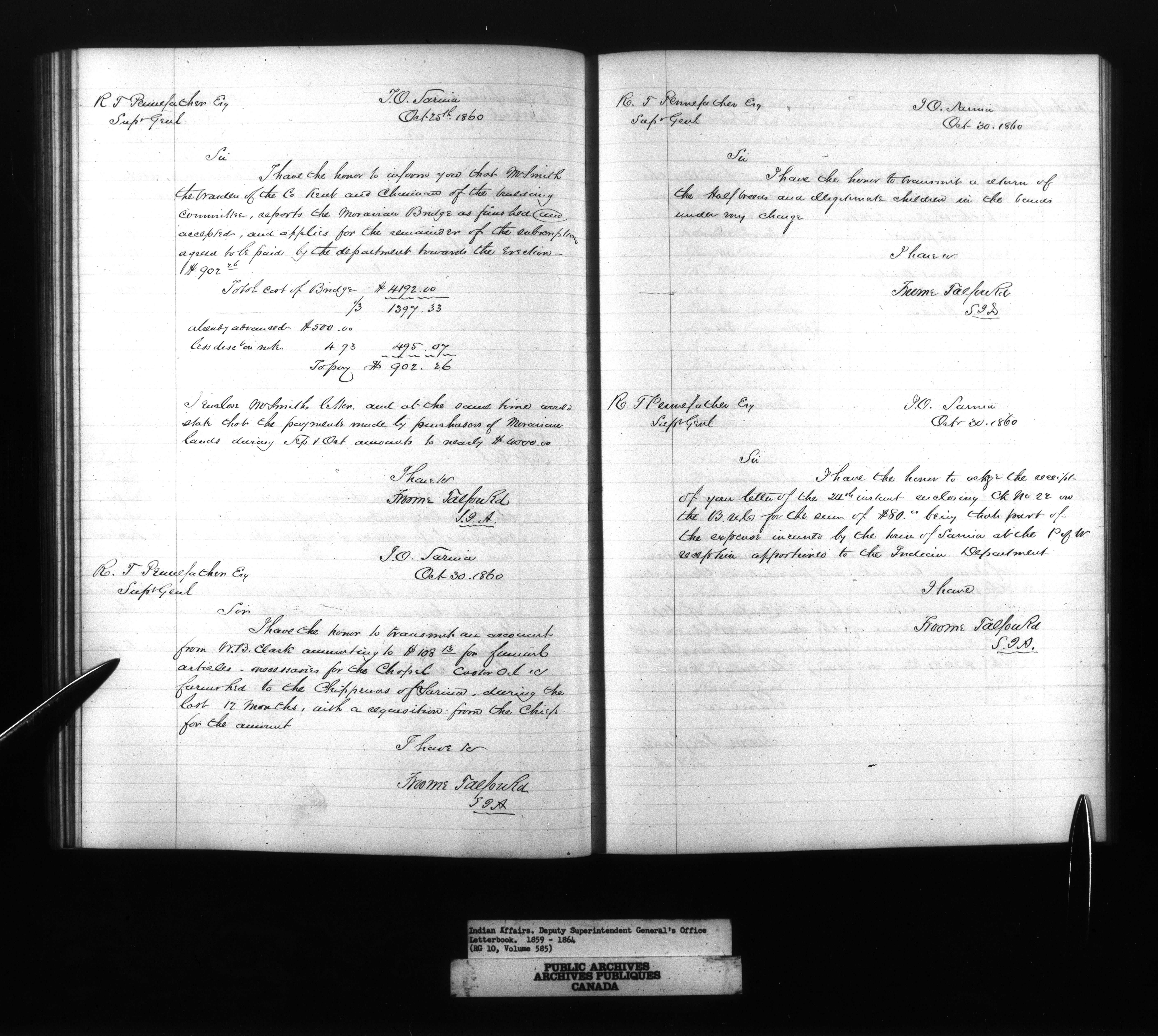 Department of Indian Affairs : Letterbooks of Superintendent, J. C. Phipps of Northern Superintendency Manitowaning - 13376