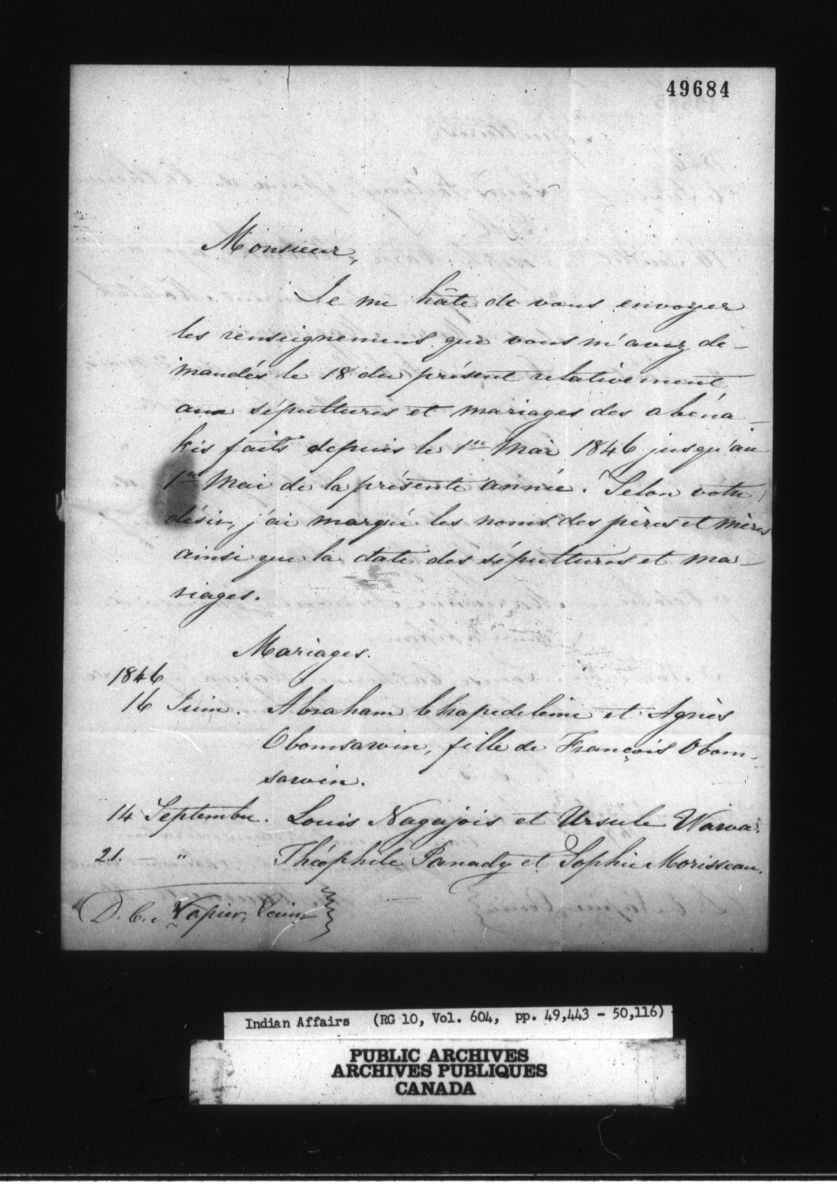 Secretary of Indian Affairs, Lower Canada and Canada East, and Resident Agent at Montreal : C-13382