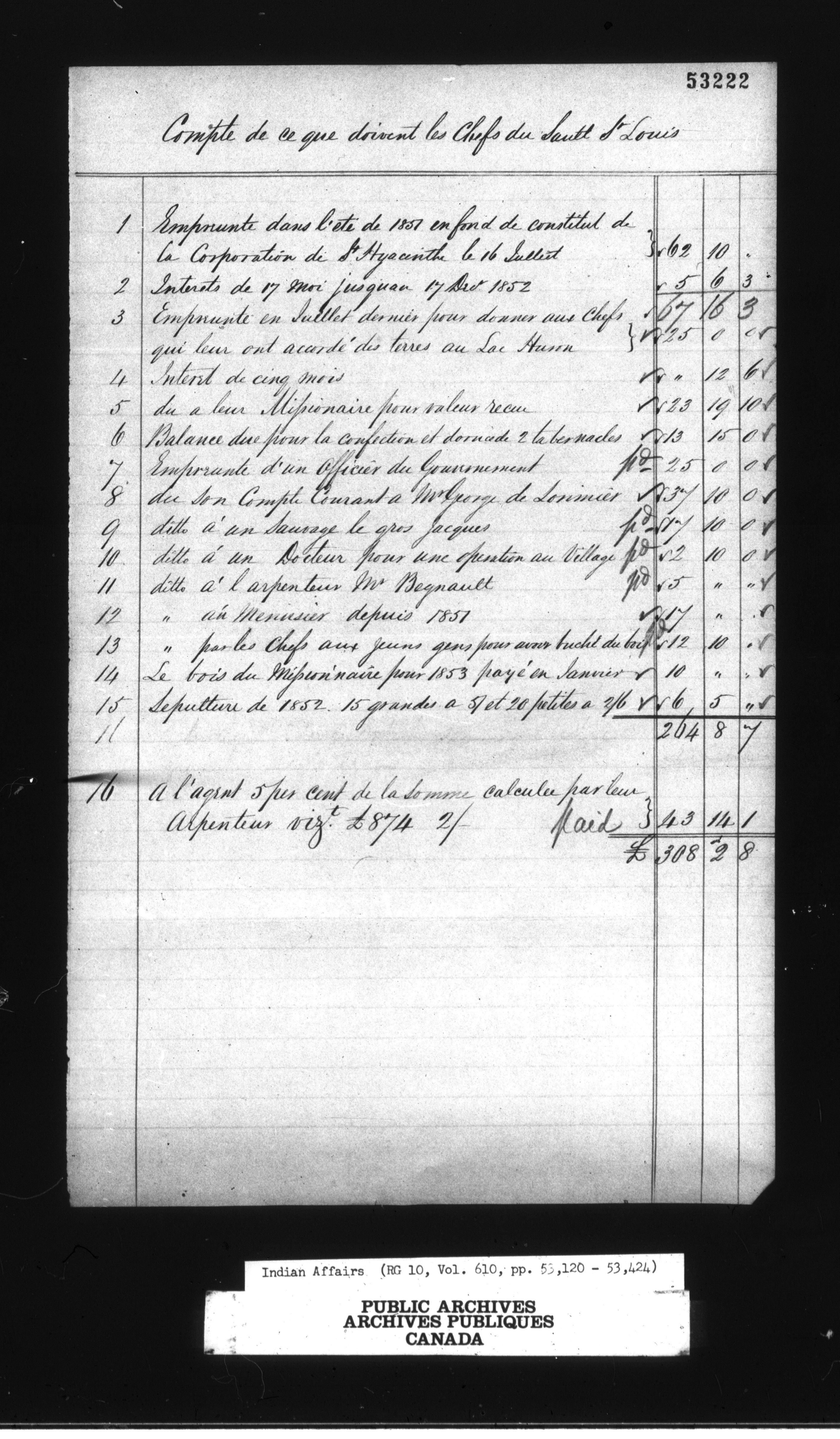 Secretary of Indian Affairs, Lower Canada and Canada East, and Resident Agent at Montreal : C-13385