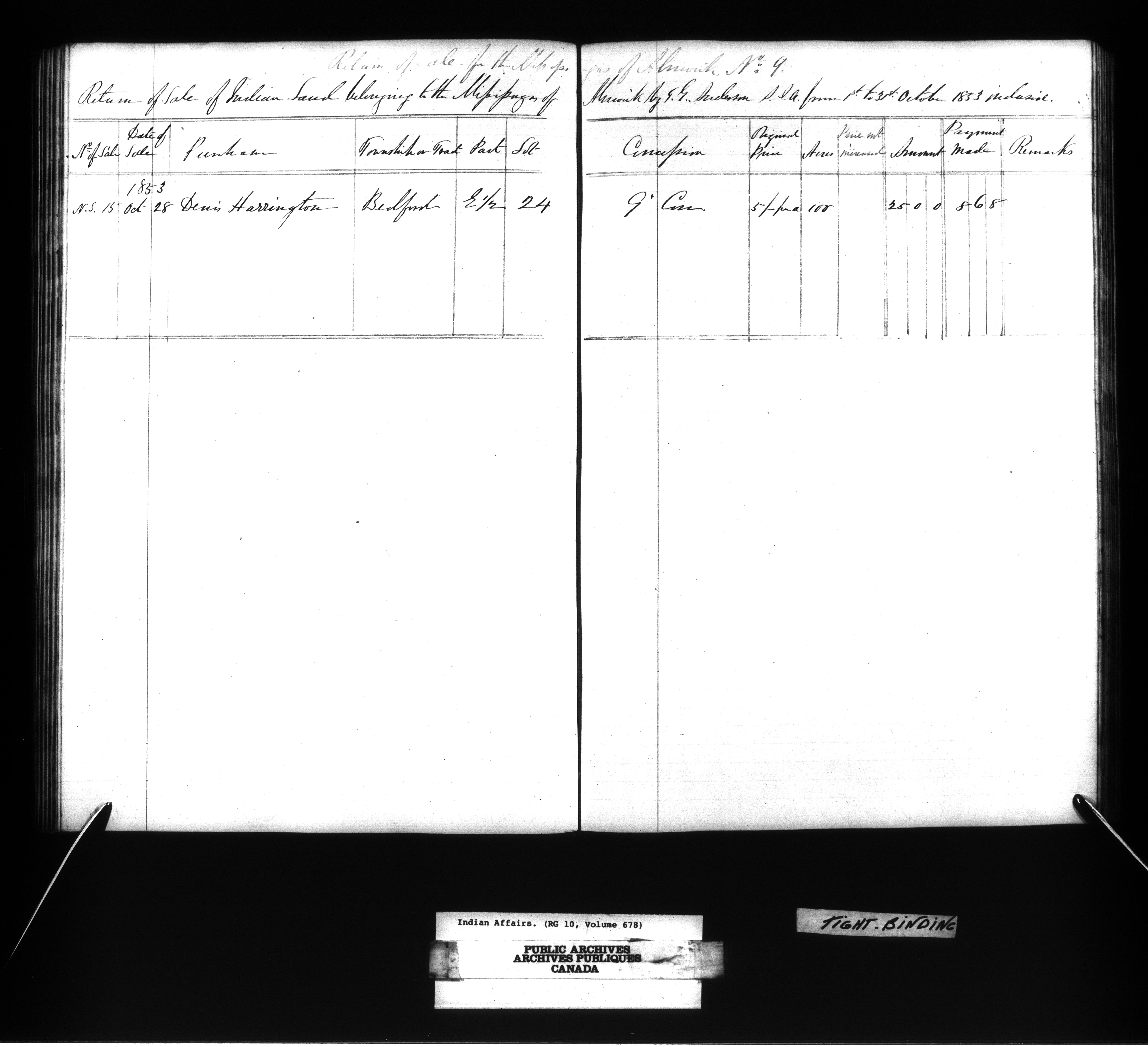 Department of Indian Affairs, Toronto office of the Central Superintendency : general land records - 13404