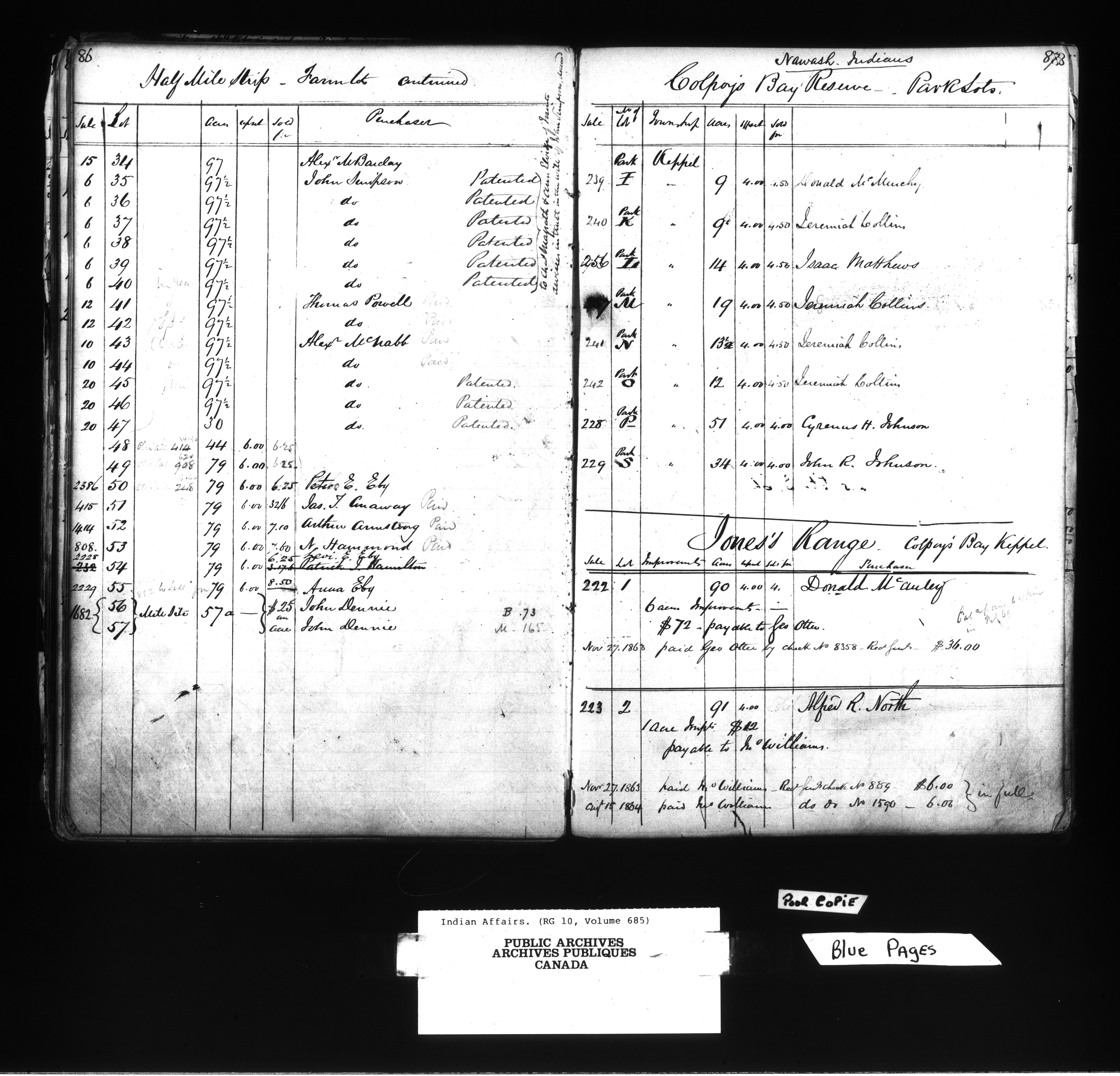 Department of Indian Affairs, Toronto office of the Central Superintendency : general land records - 13405