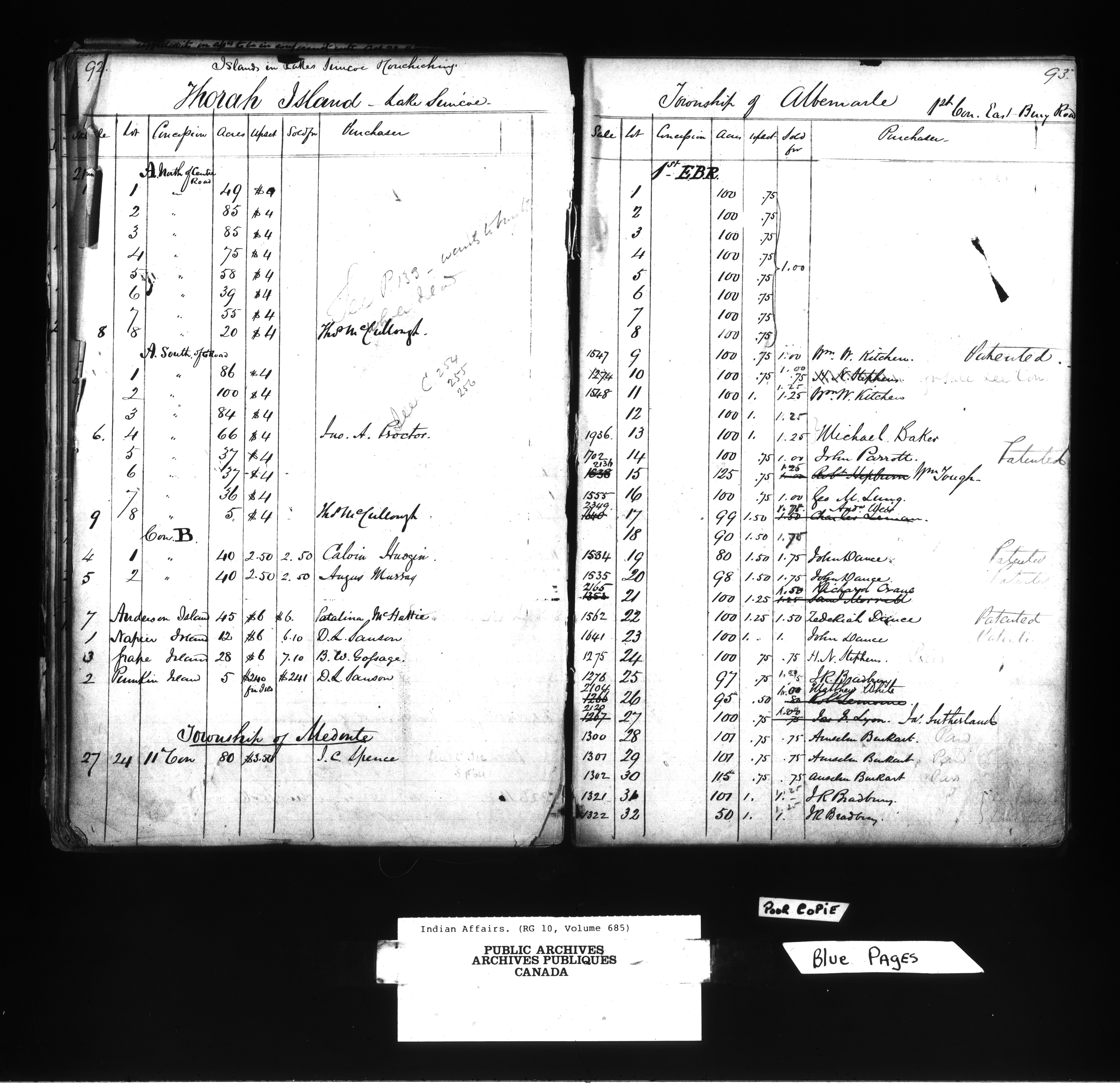 Department of Indian Affairs, Toronto office of the Central Superintendency : general land records - 13405