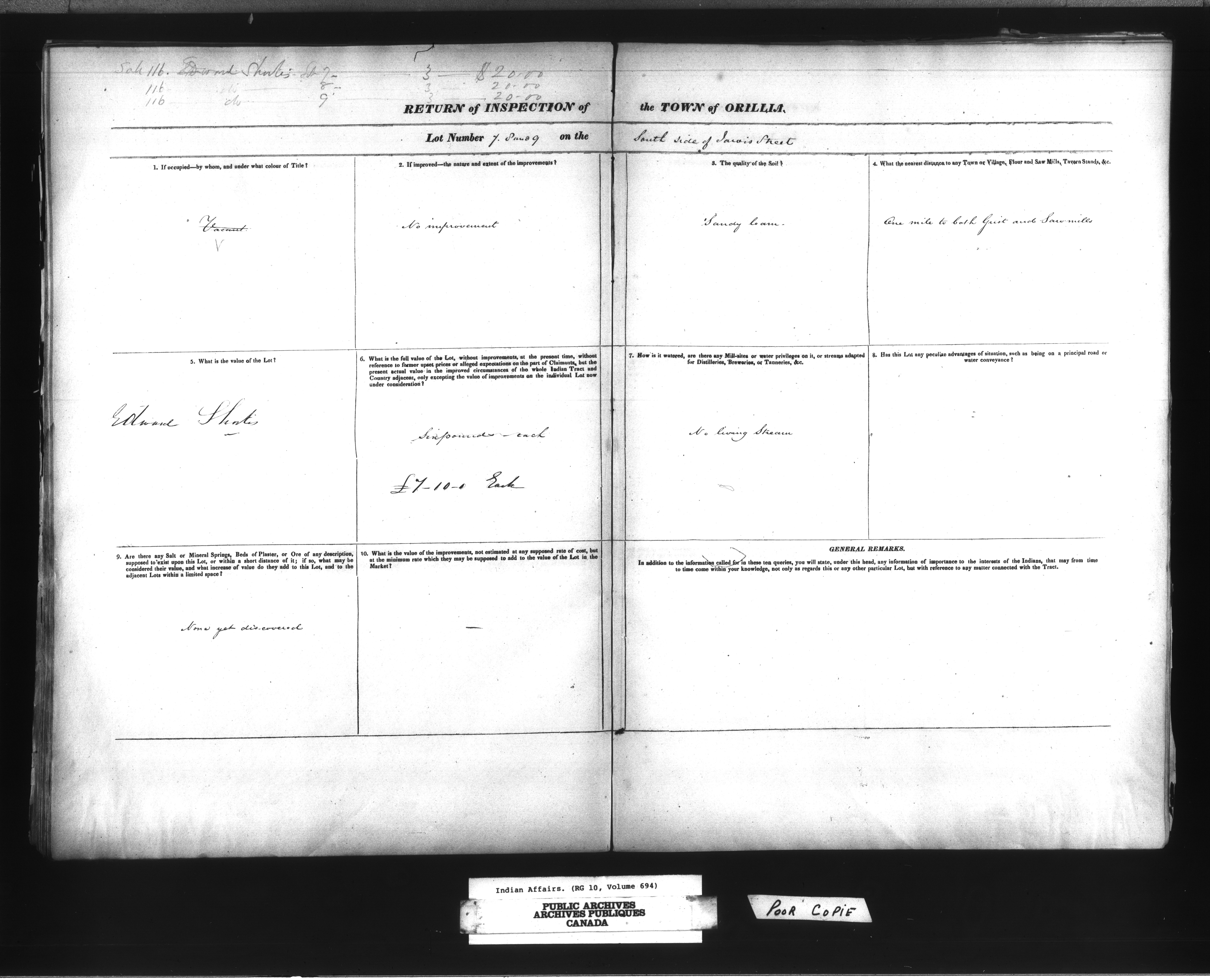 Department of Indian Affairs, Toronto office of the Central Superintendency : general land records - 13408
