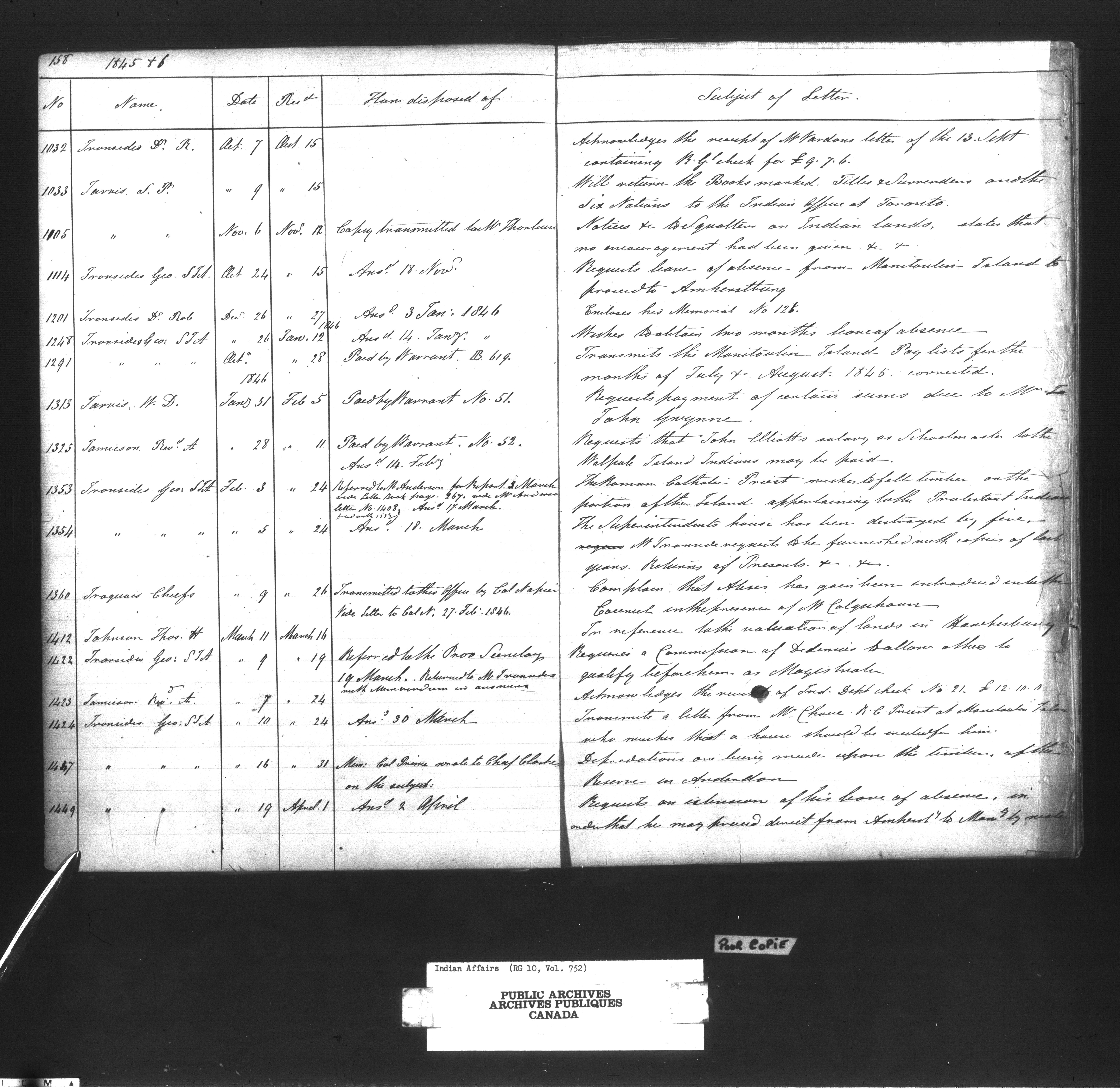 Department of Indian Affairs : Office of the Civil Secretary in the Province of Canada - 13419