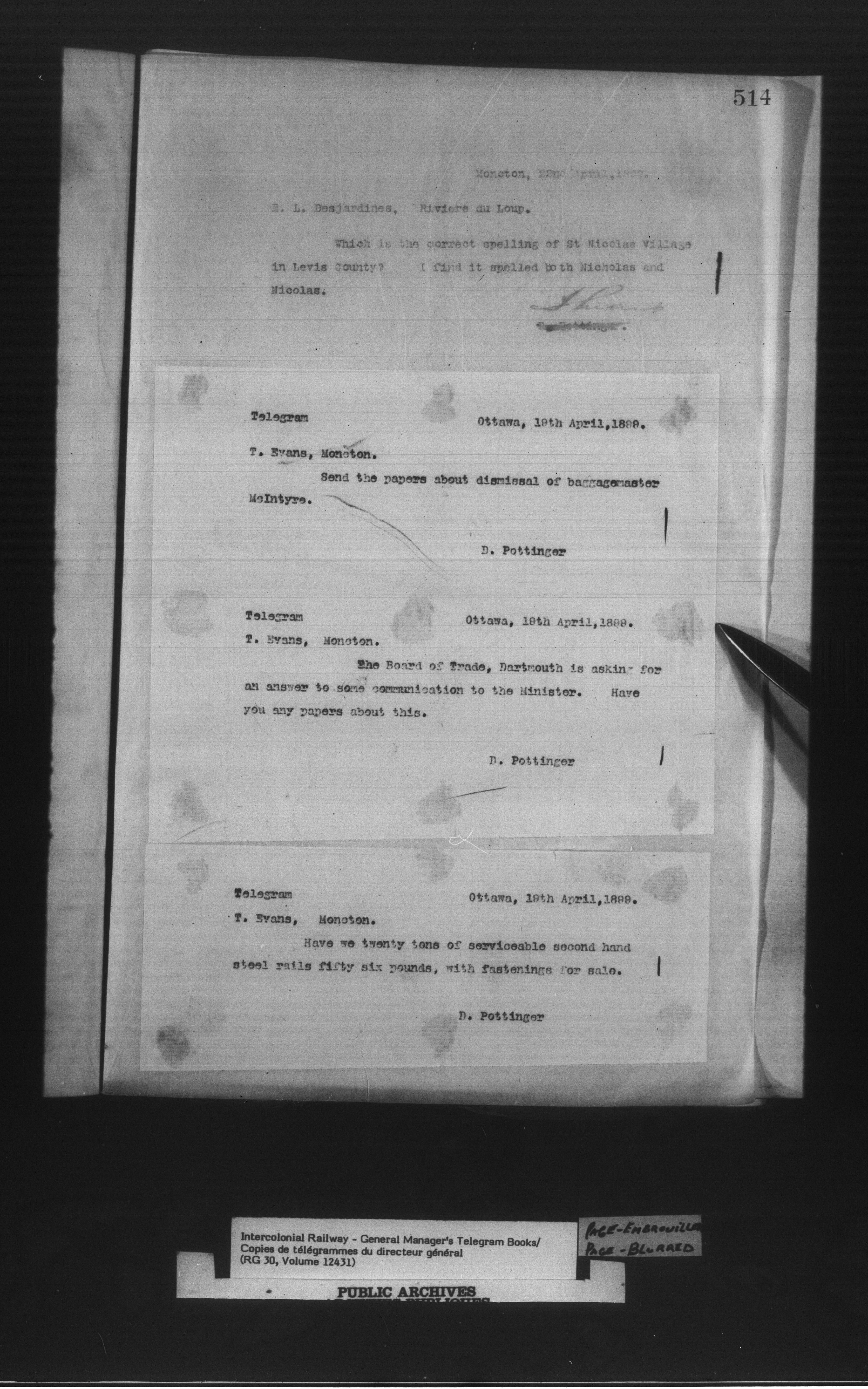 Canadian Government Railways : Office of the General Manager, Copies of telegrams - 13433