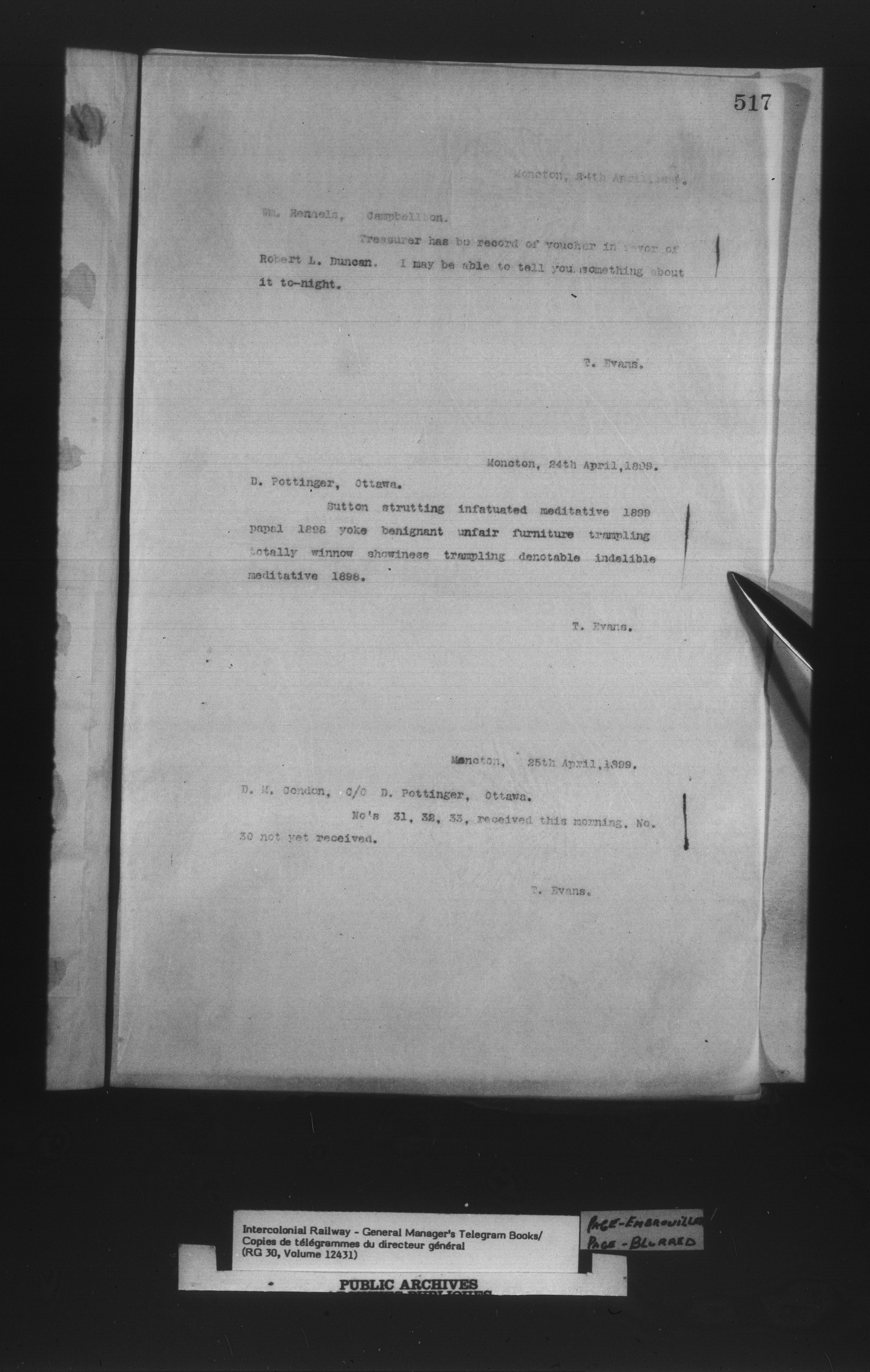 Canadian Government Railways : Office of the General Manager, Copies of telegrams - 13433