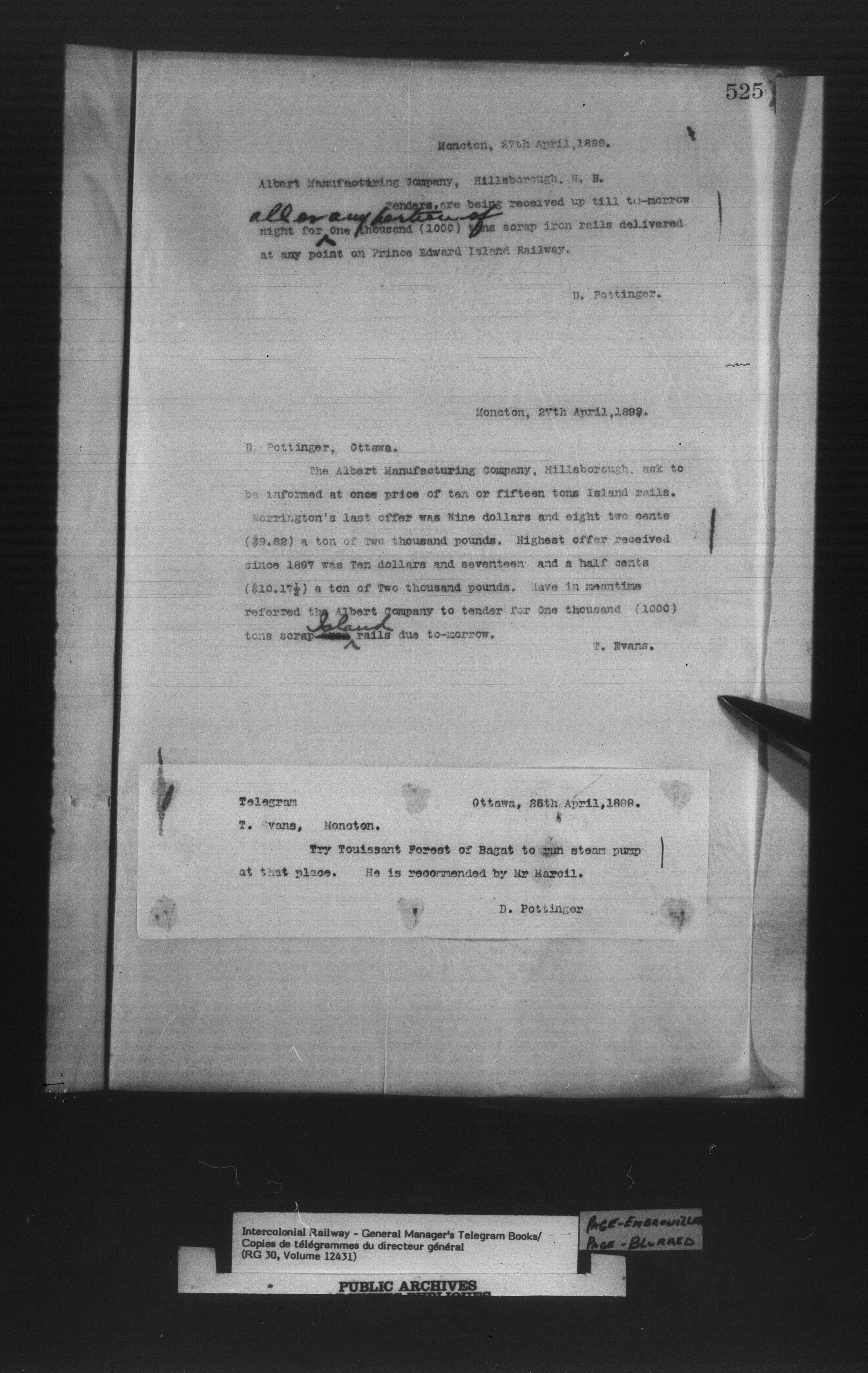 Canadian Government Railways : Office of the General Manager, Copies of telegrams - 13433