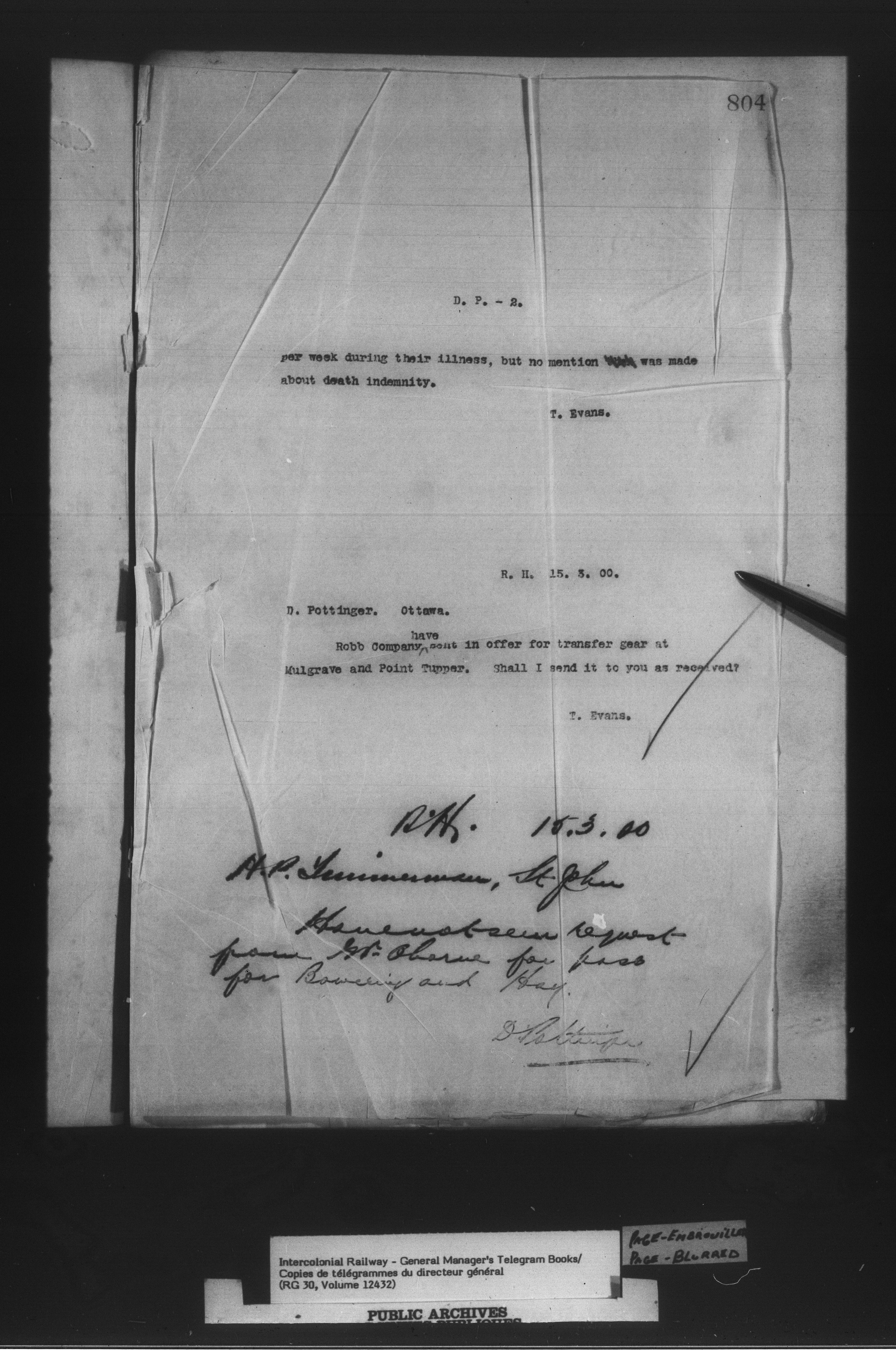 Canadian Government Railways : Office of the General Manager, Copies of telegrams - 13433
