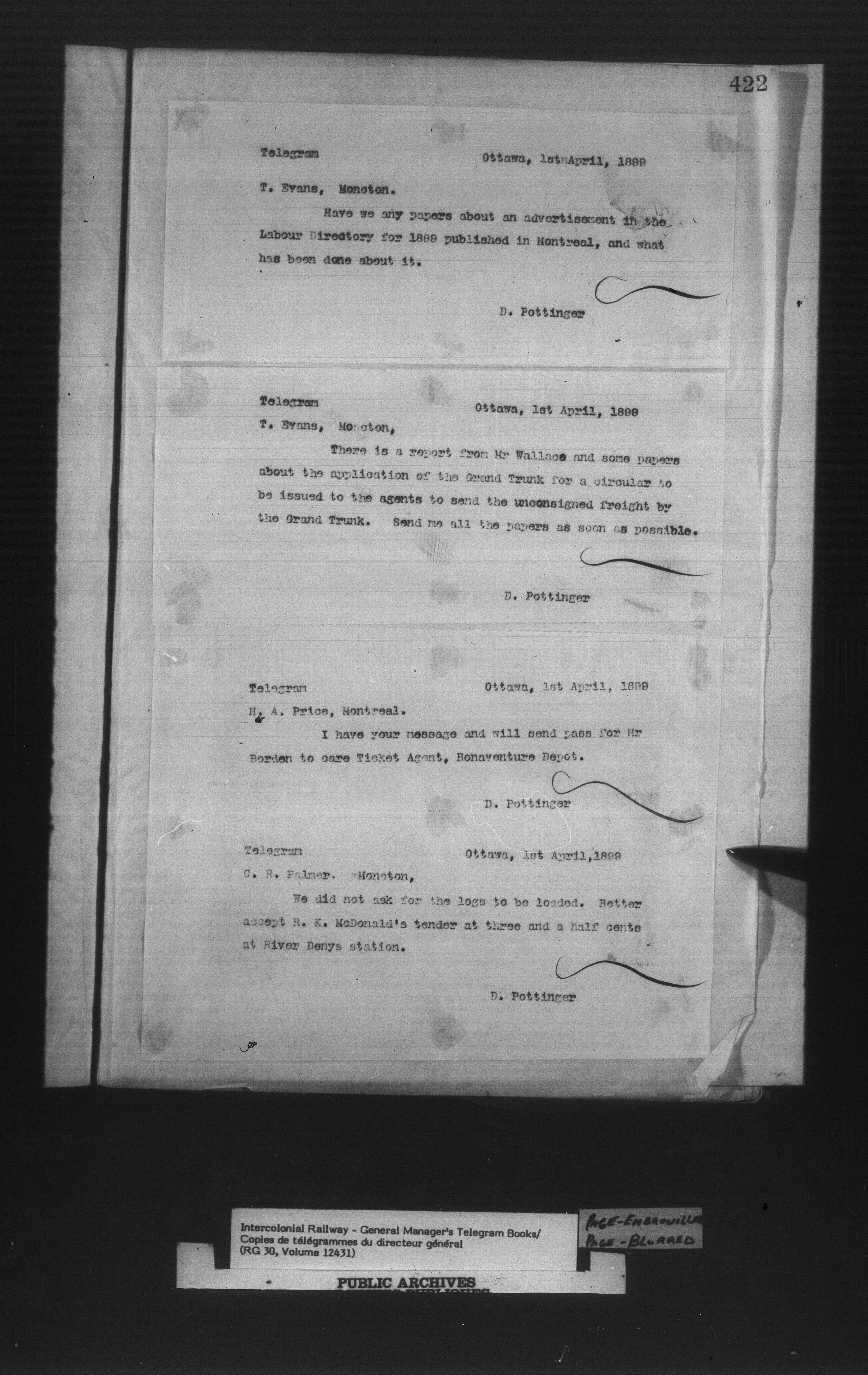 Canadian Government Railways : Office of the General Manager, Copies of telegrams - 13433