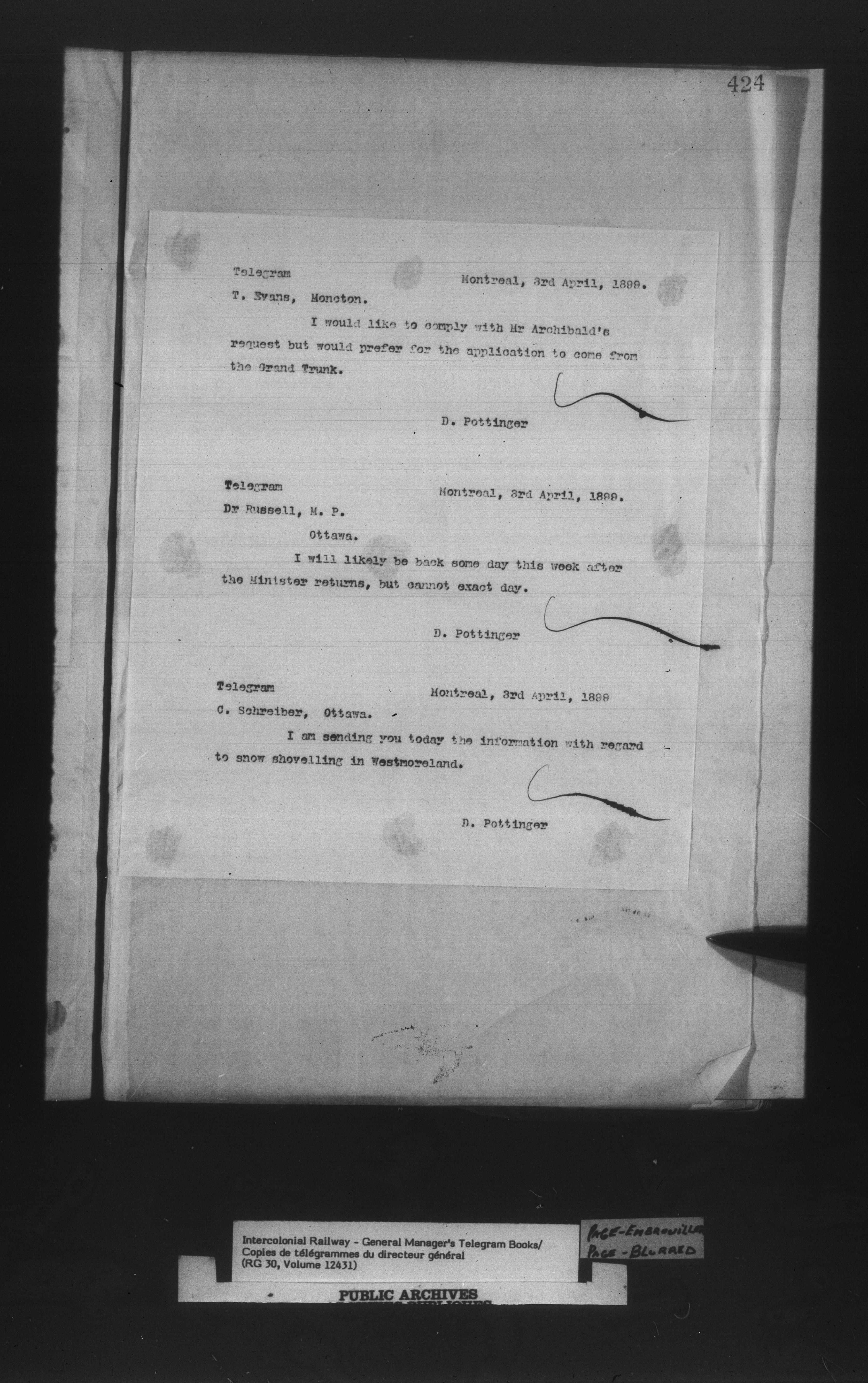 Canadian Government Railways : Office of the General Manager, Copies of telegrams - 13433