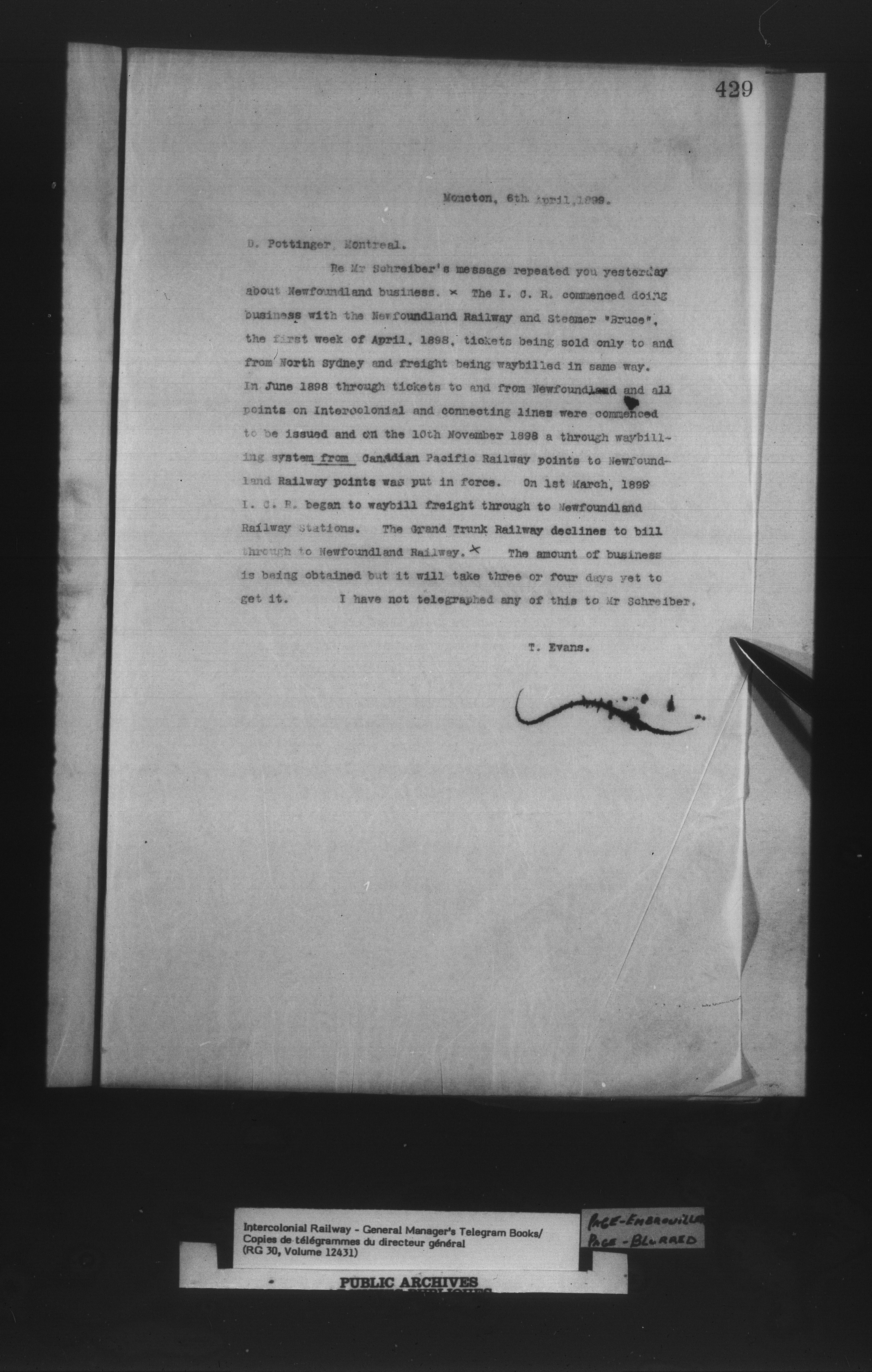 Canadian Government Railways : Office of the General Manager, Copies of telegrams - 13433