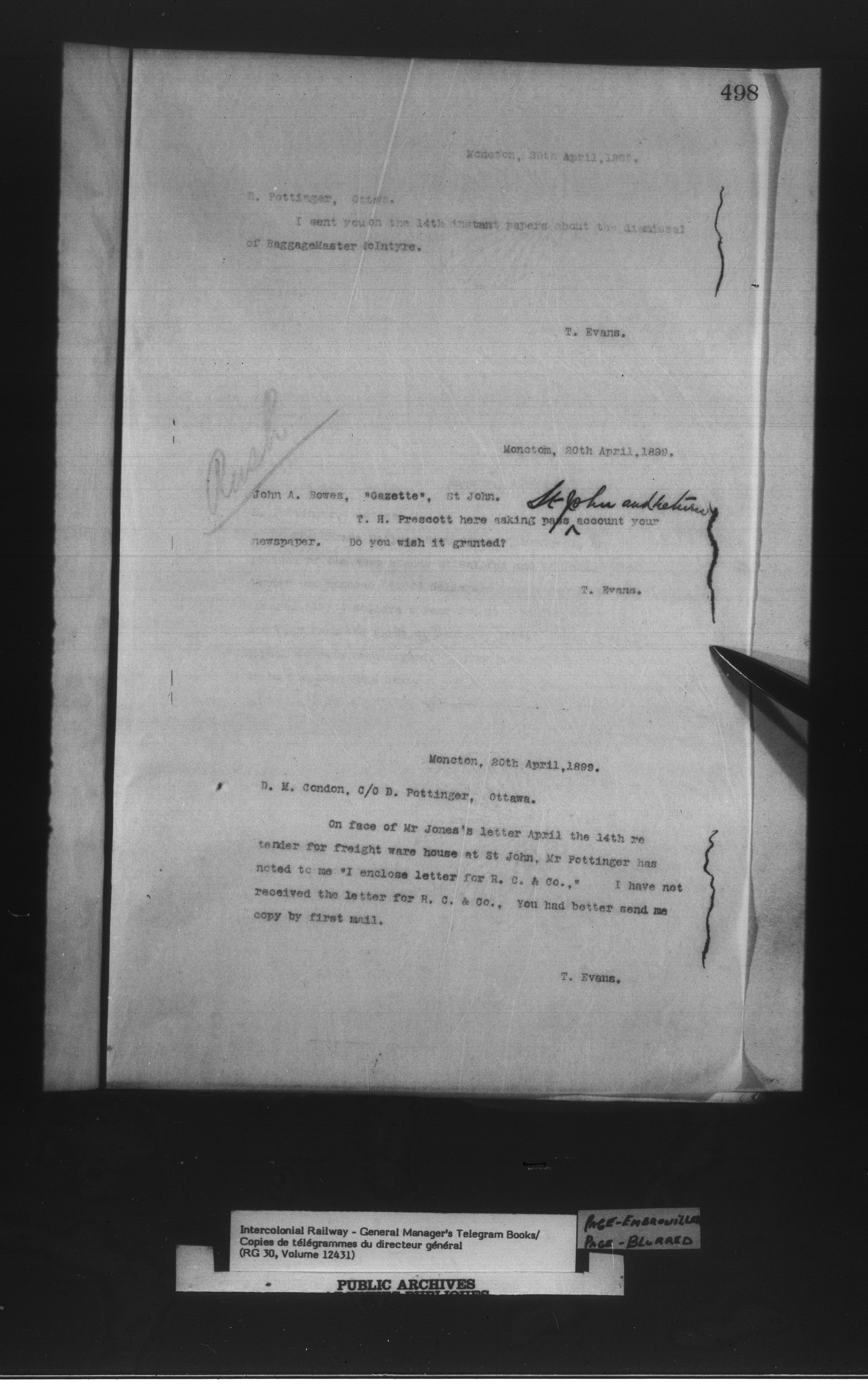 Canadian Government Railways : Office of the General Manager, Copies of telegrams - 13433