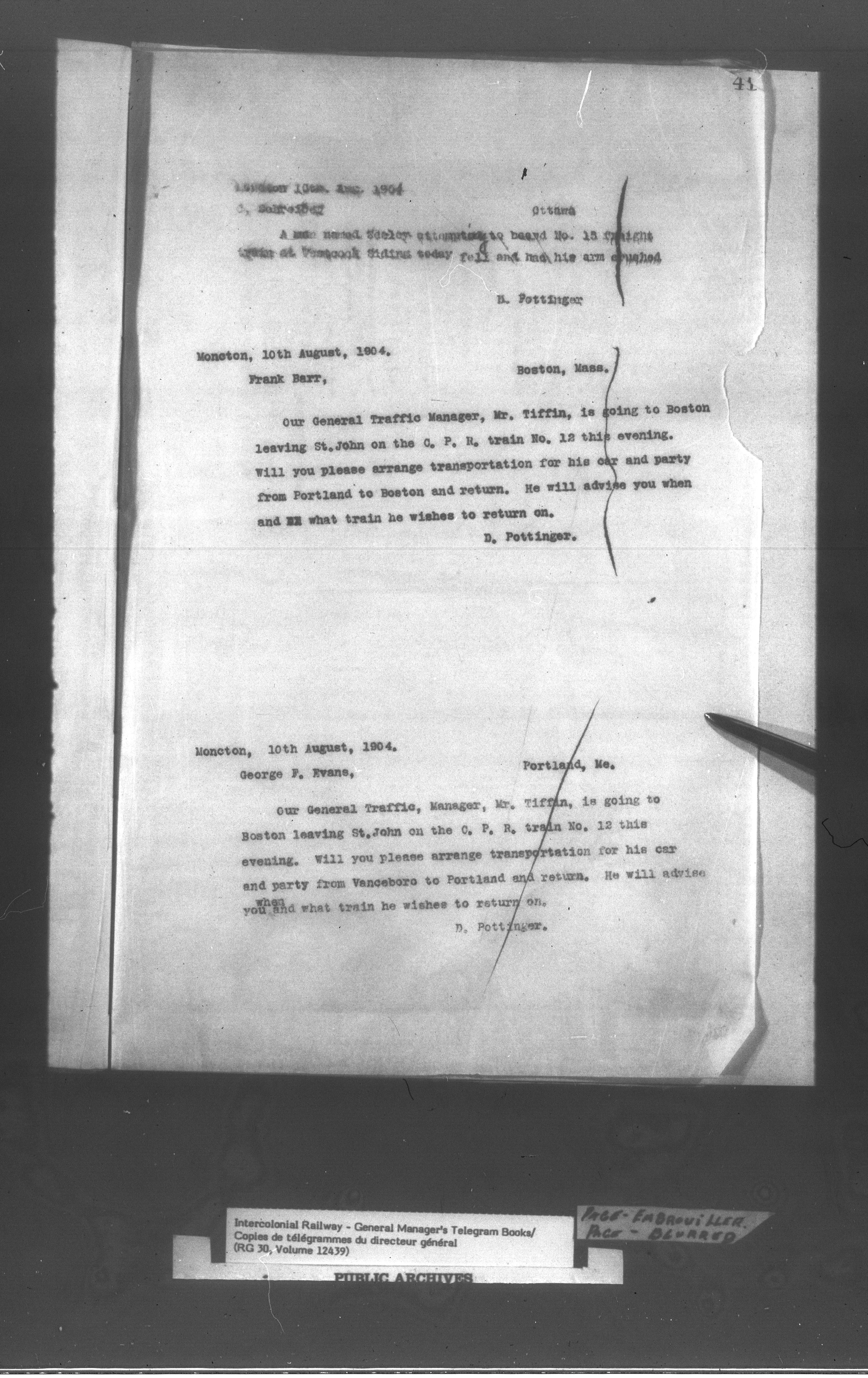 Canadian Government Railways : Office of the General Manager, Copies of telegrams - 13438