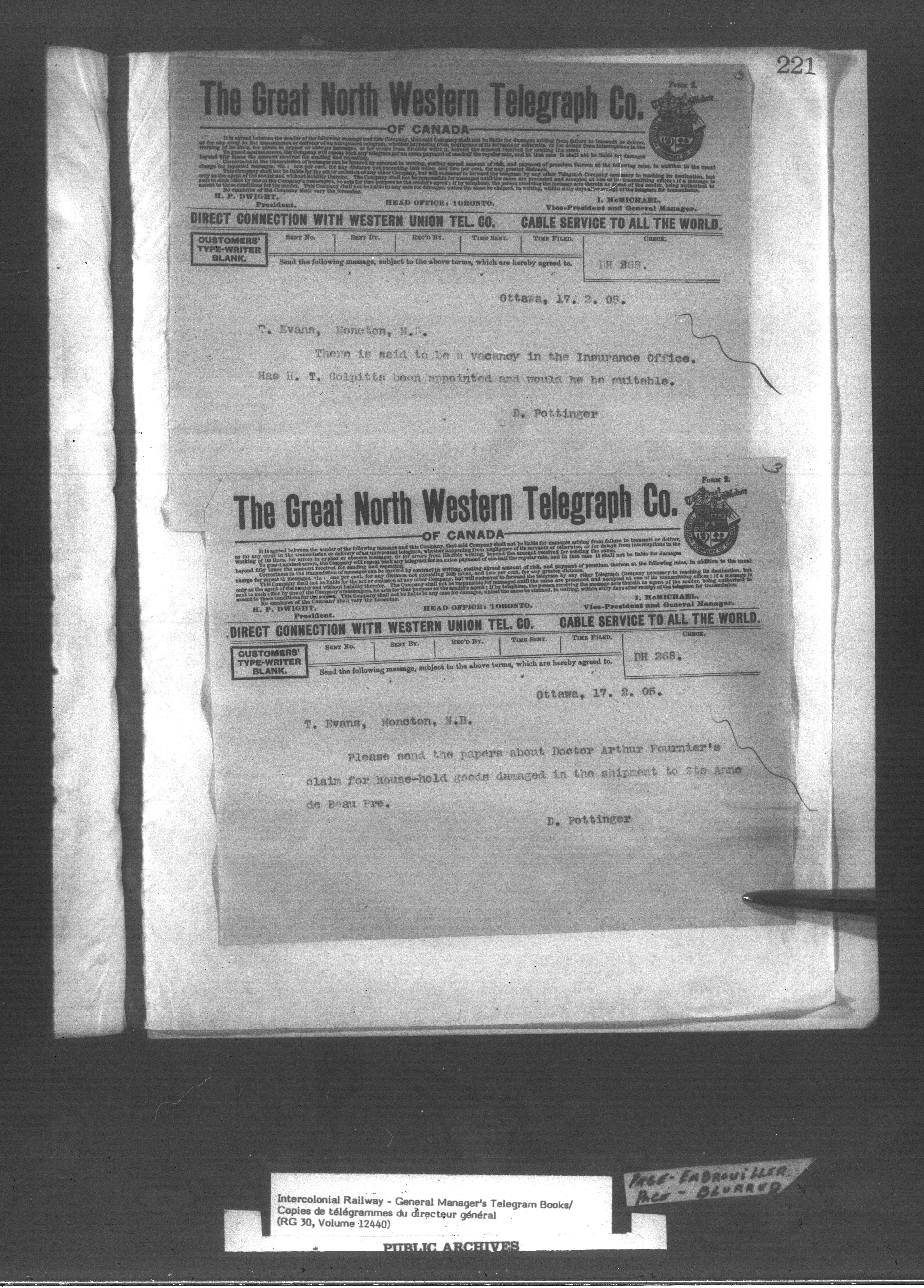Canadian Government Railways : Office of the General Manager, Copies of telegrams - 13438