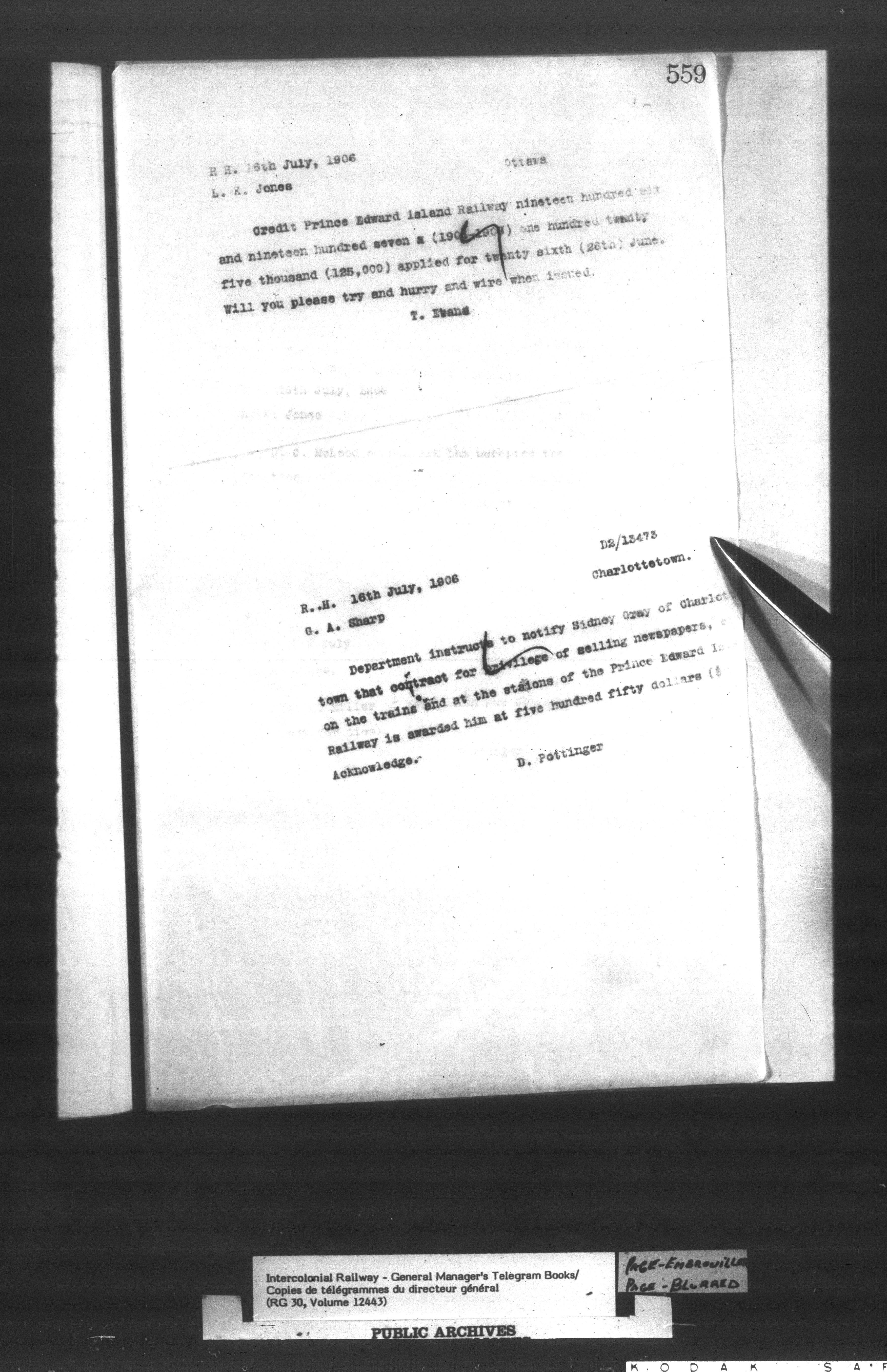 Canadian Government Railways : Office of the General Manager, Copies of telegrams - 13440