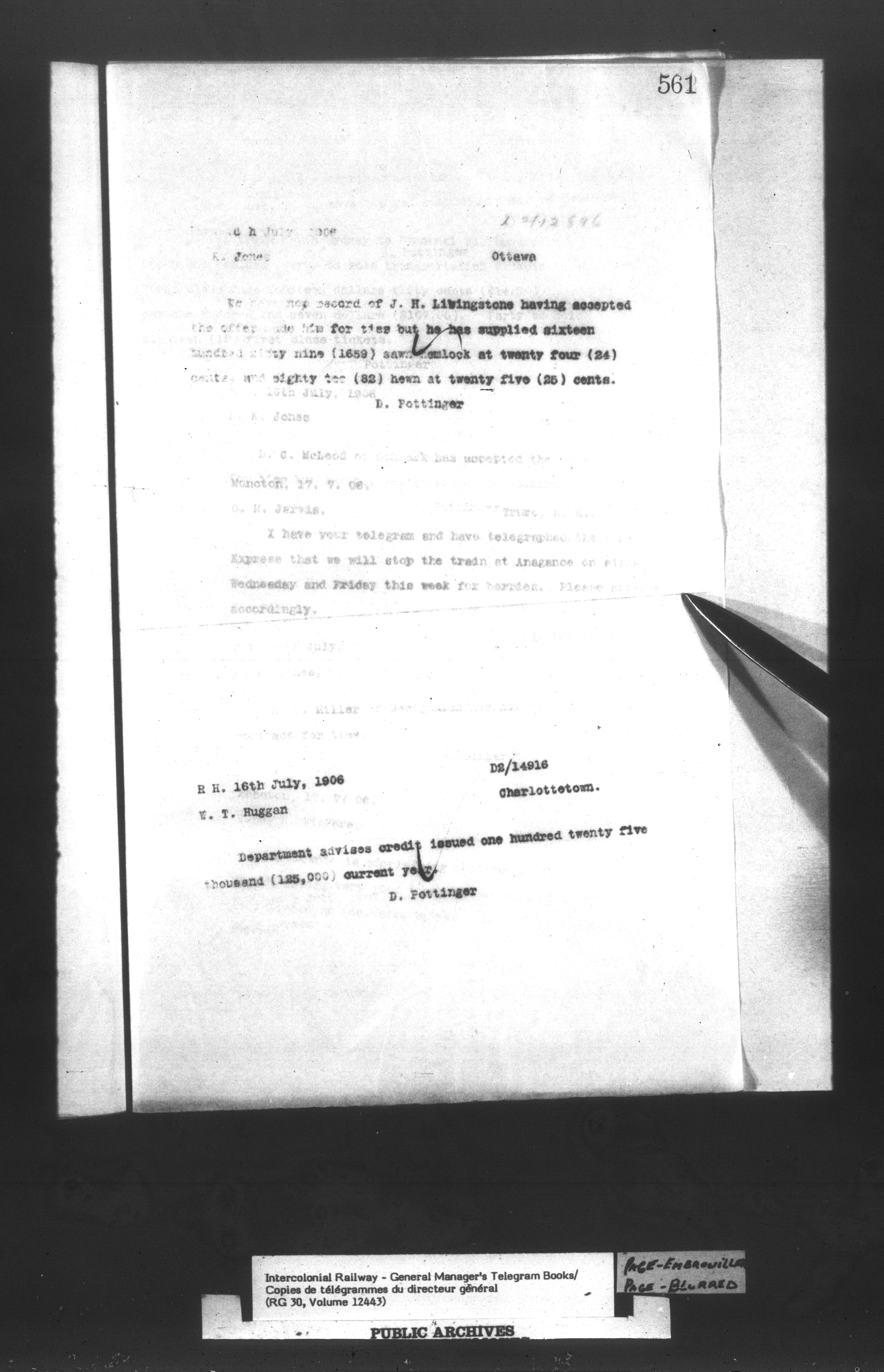 Canadian Government Railways : Office of the General Manager, Copies of telegrams - 13440