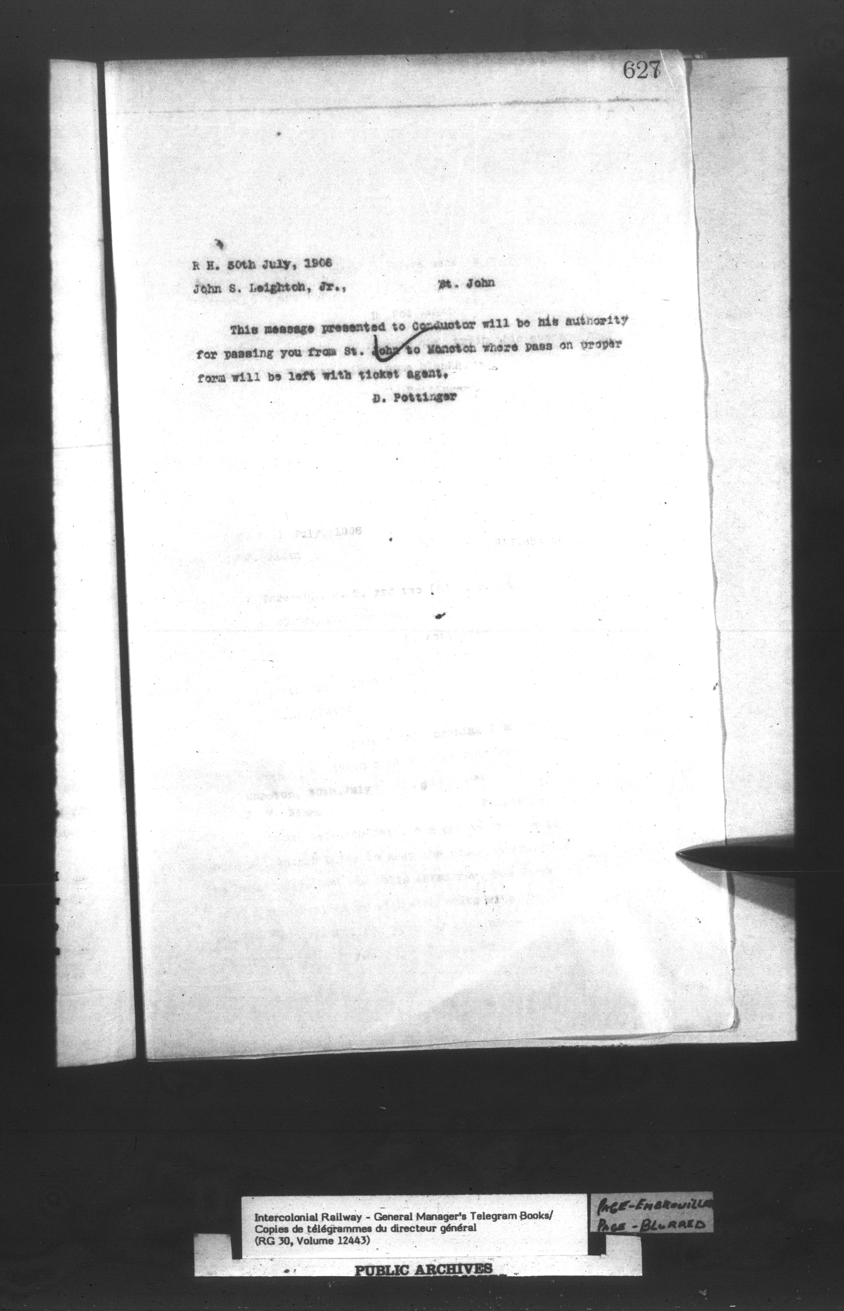 Canadian Government Railways : Office of the General Manager, Copies of telegrams - 13440
