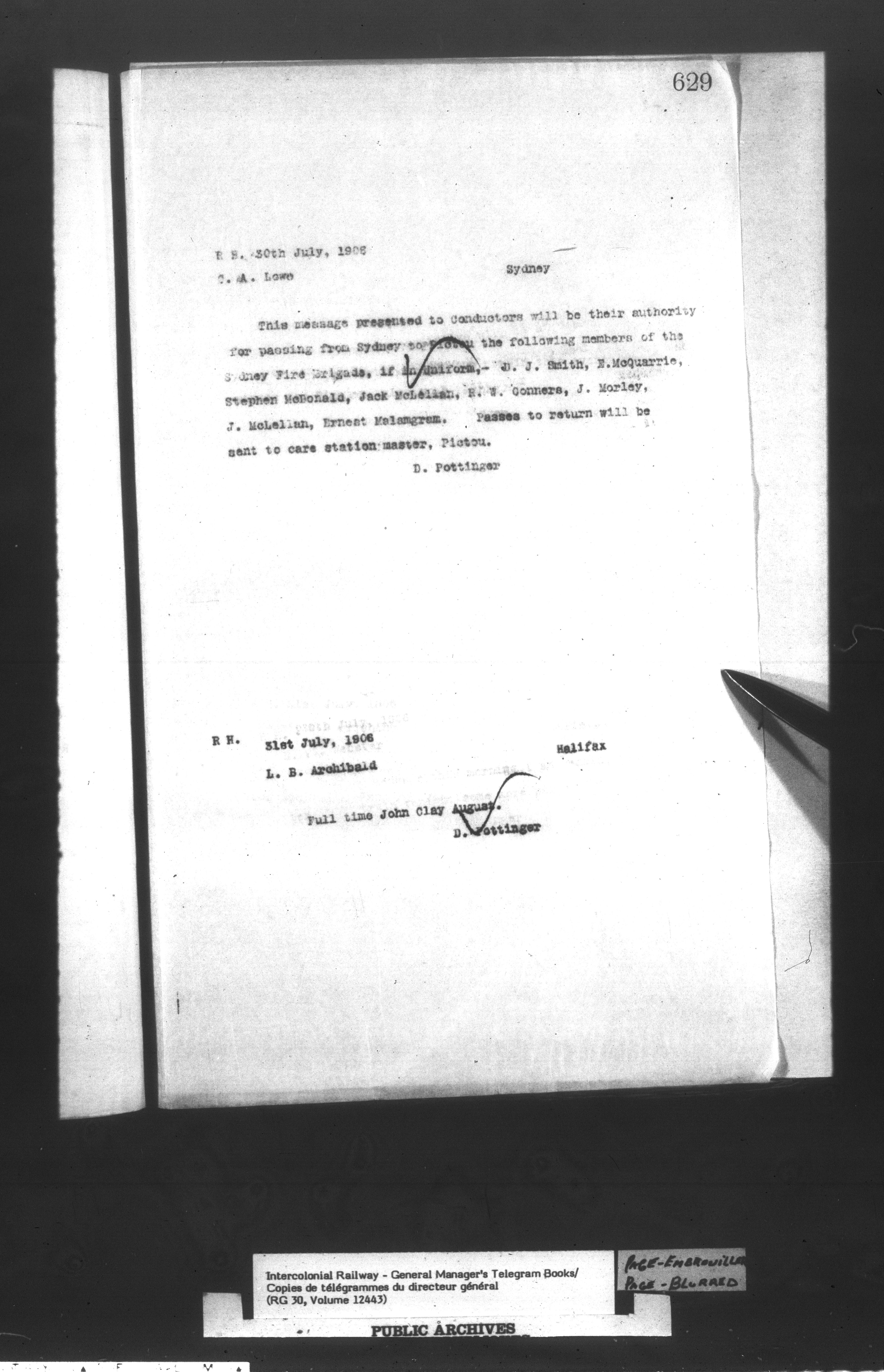 Canadian Government Railways : Office of the General Manager, Copies of telegrams - 13440