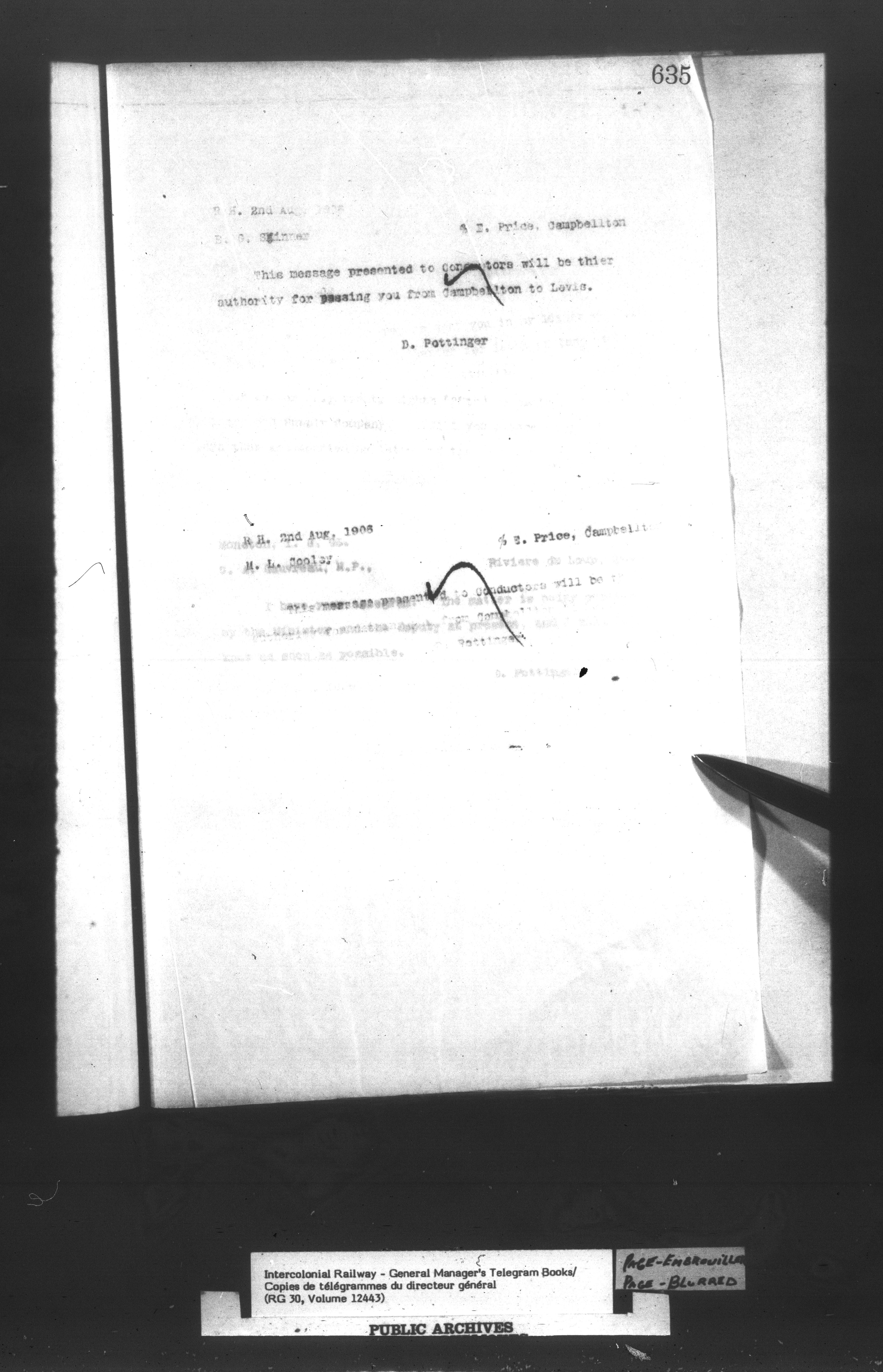Canadian Government Railways : Office of the General Manager, Copies of telegrams - 13440
