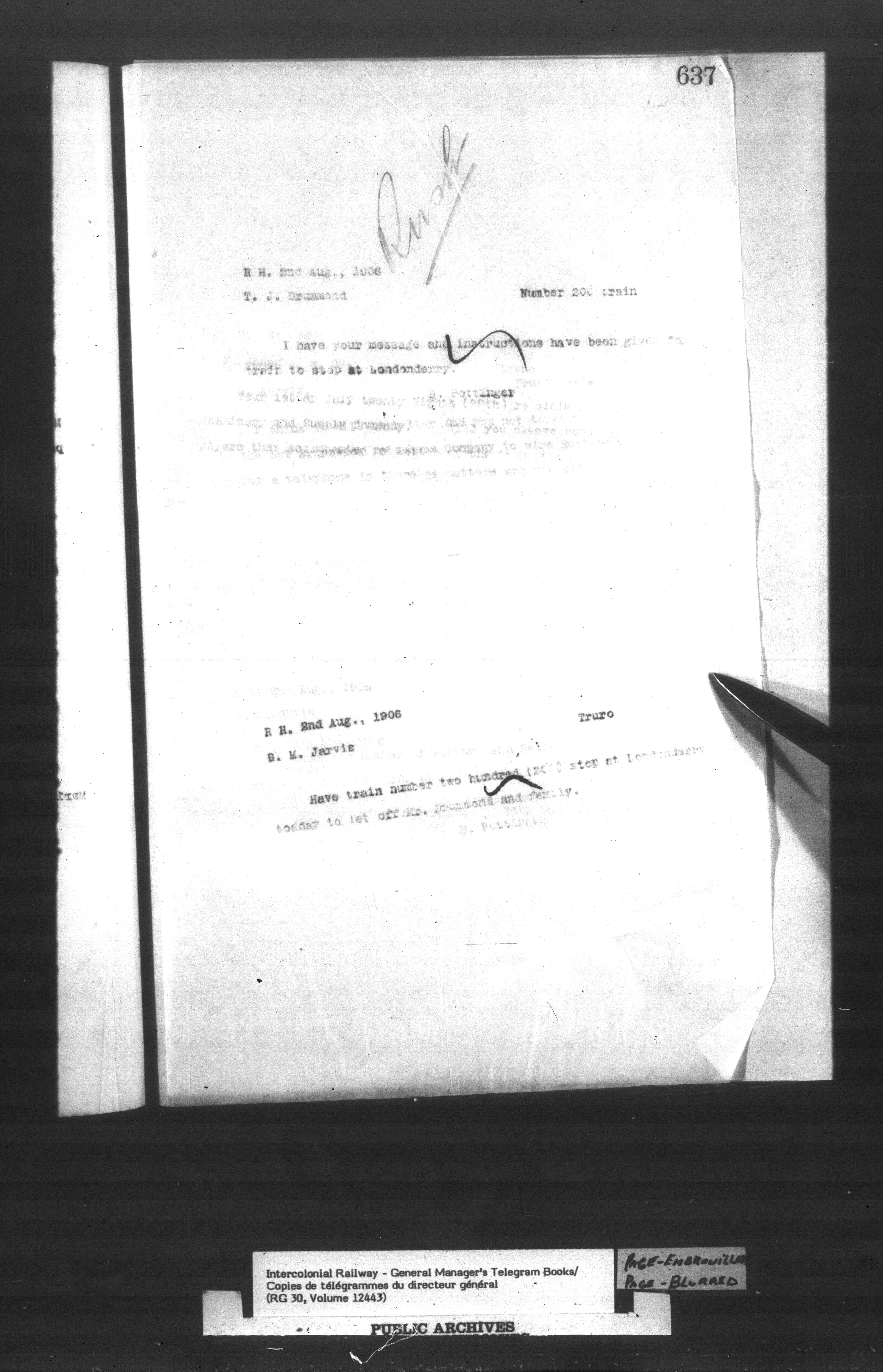 Canadian Government Railways : Office of the General Manager, Copies of telegrams - 13440