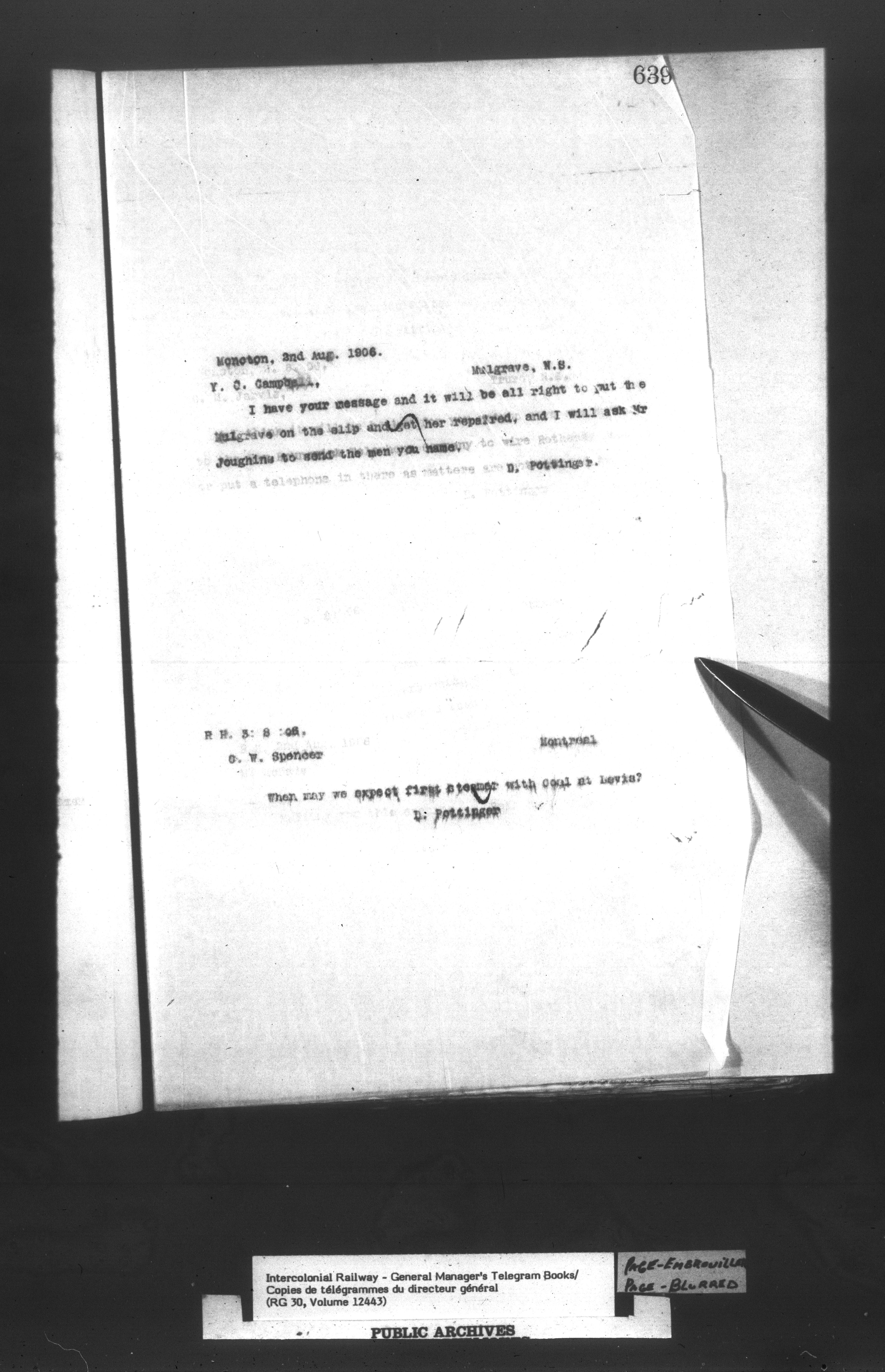 Canadian Government Railways : Office of the General Manager, Copies of telegrams - 13440