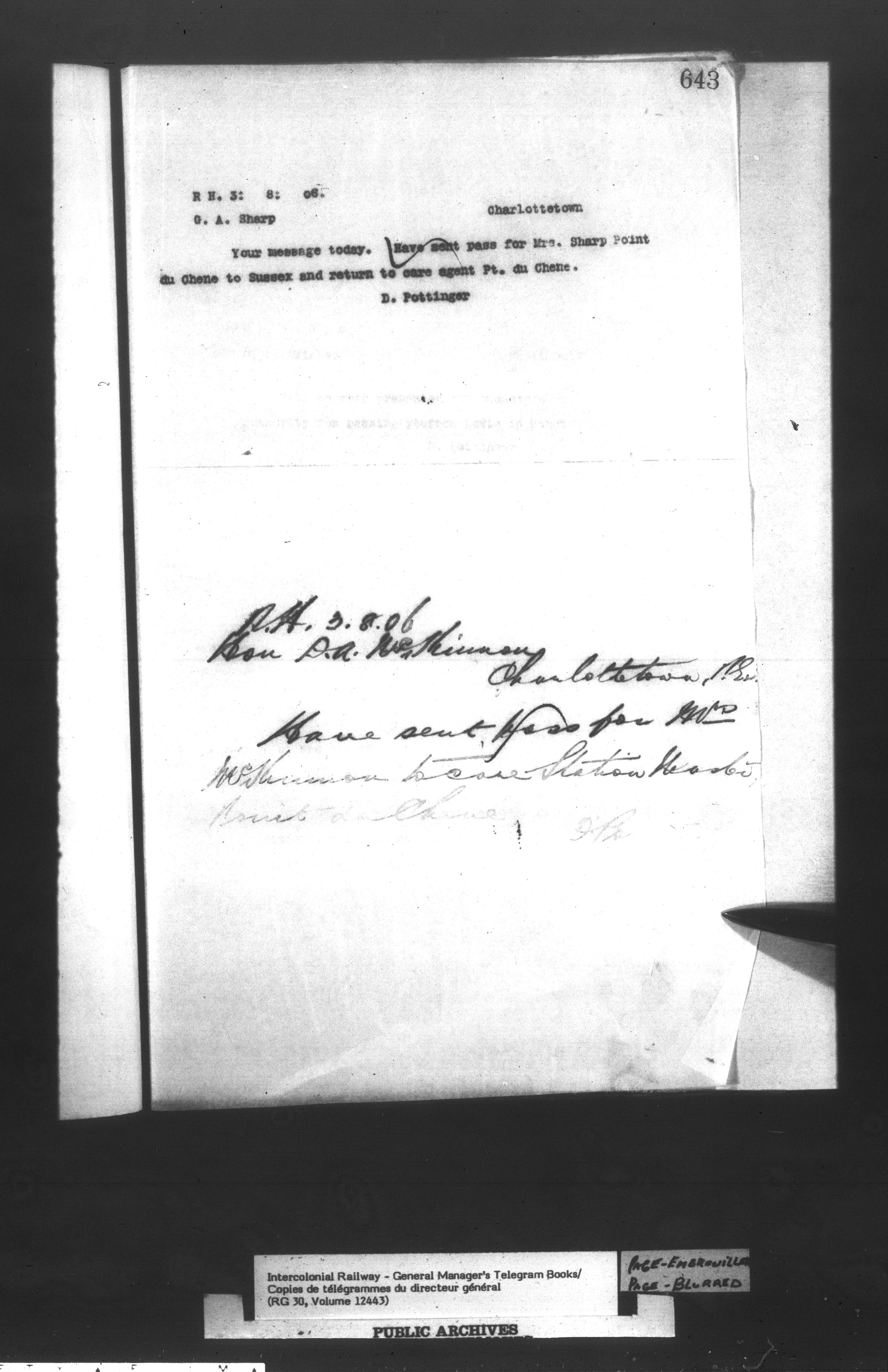 Canadian Government Railways : Office of the General Manager, Copies of telegrams - 13440