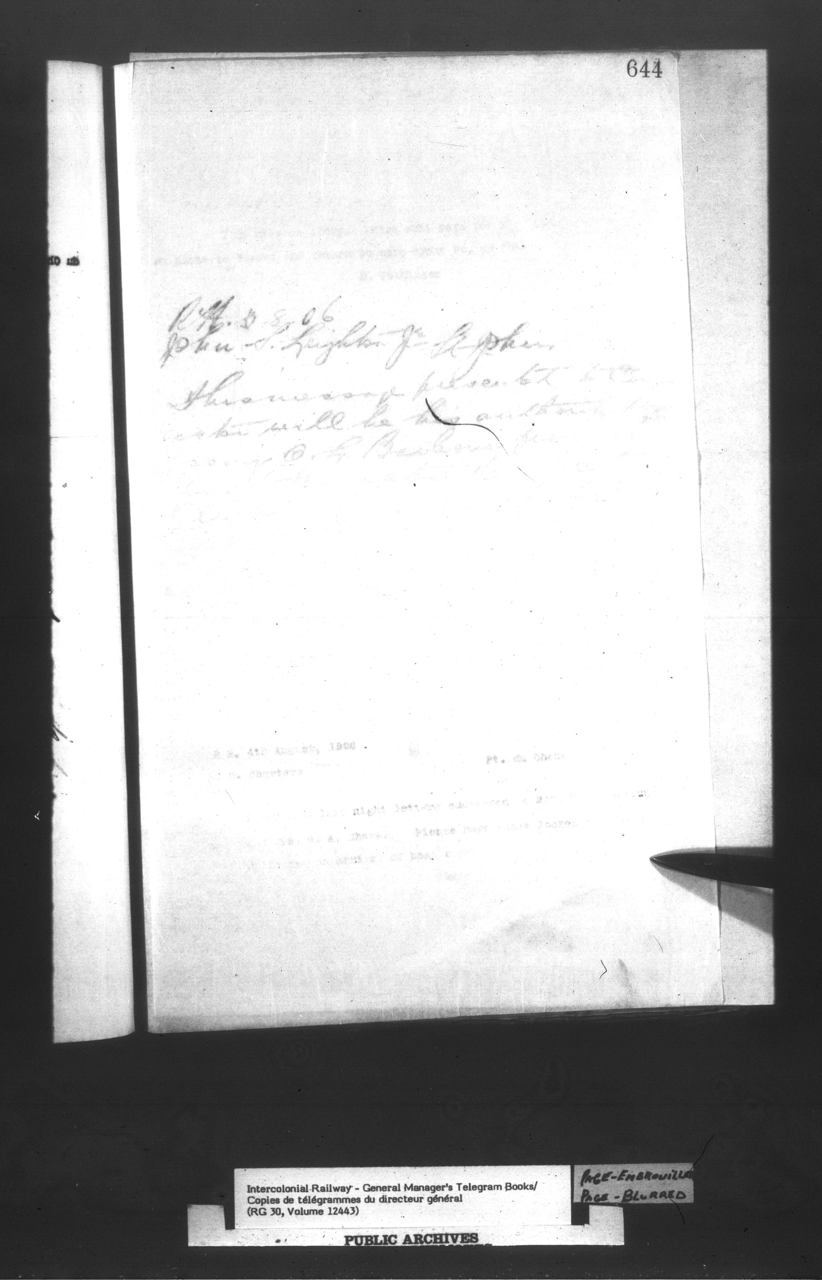 Canadian Government Railways : Office of the General Manager, Copies of telegrams - 13440