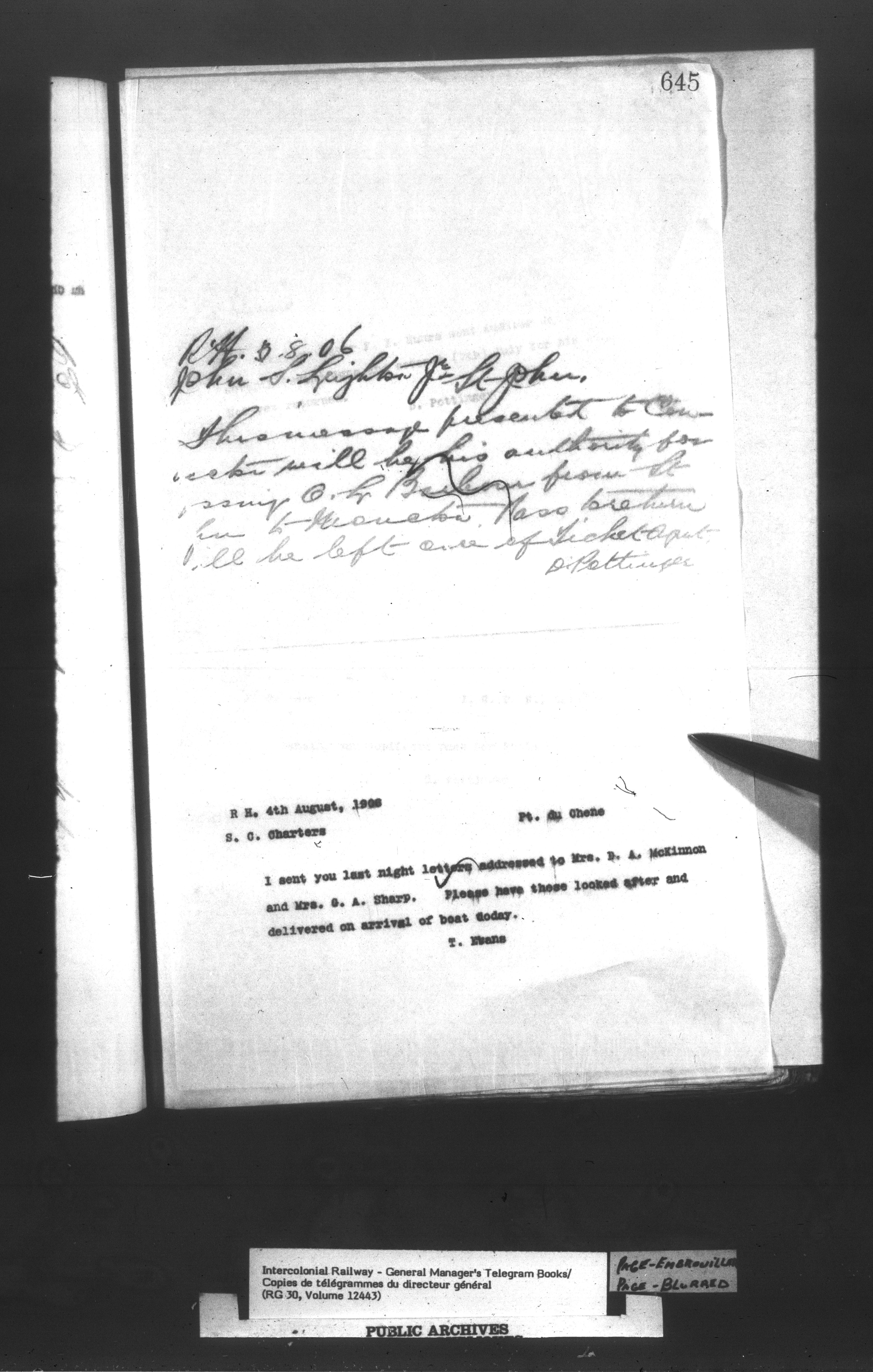 Canadian Government Railways : Office of the General Manager, Copies of telegrams - 13440