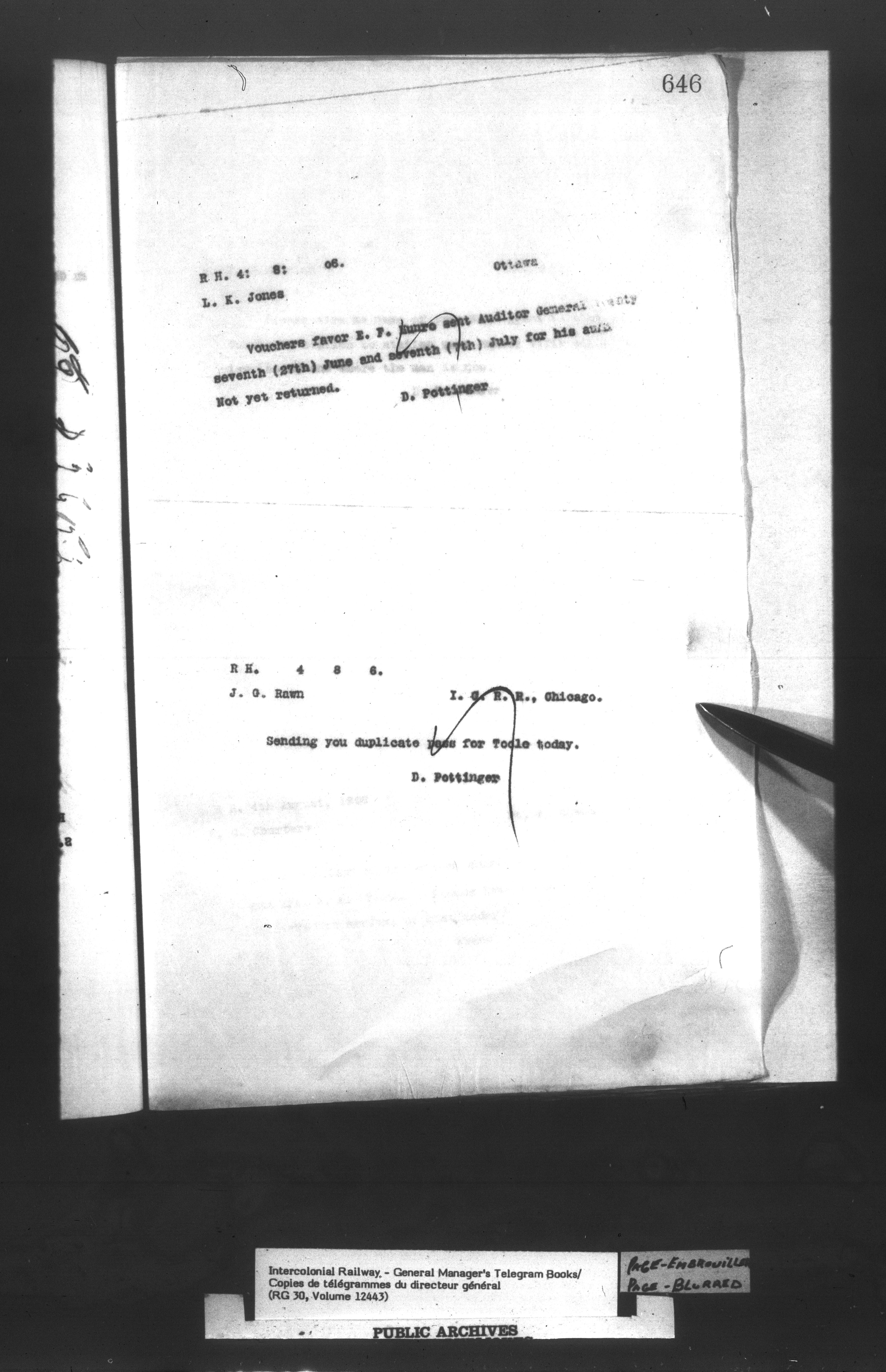 Canadian Government Railways : Office of the General Manager, Copies of telegrams - 13440
