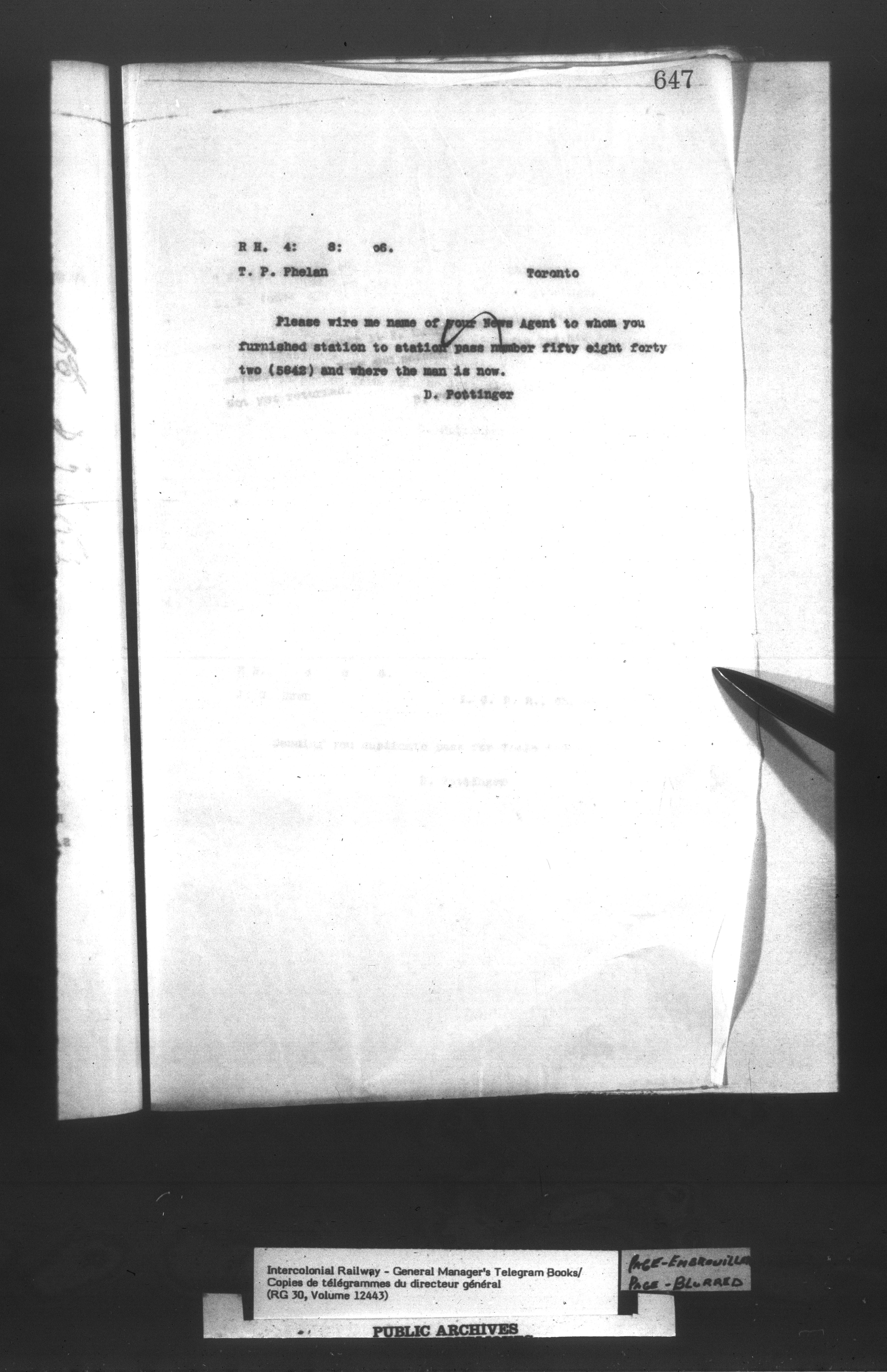 Canadian Government Railways : Office of the General Manager, Copies of telegrams - 13440