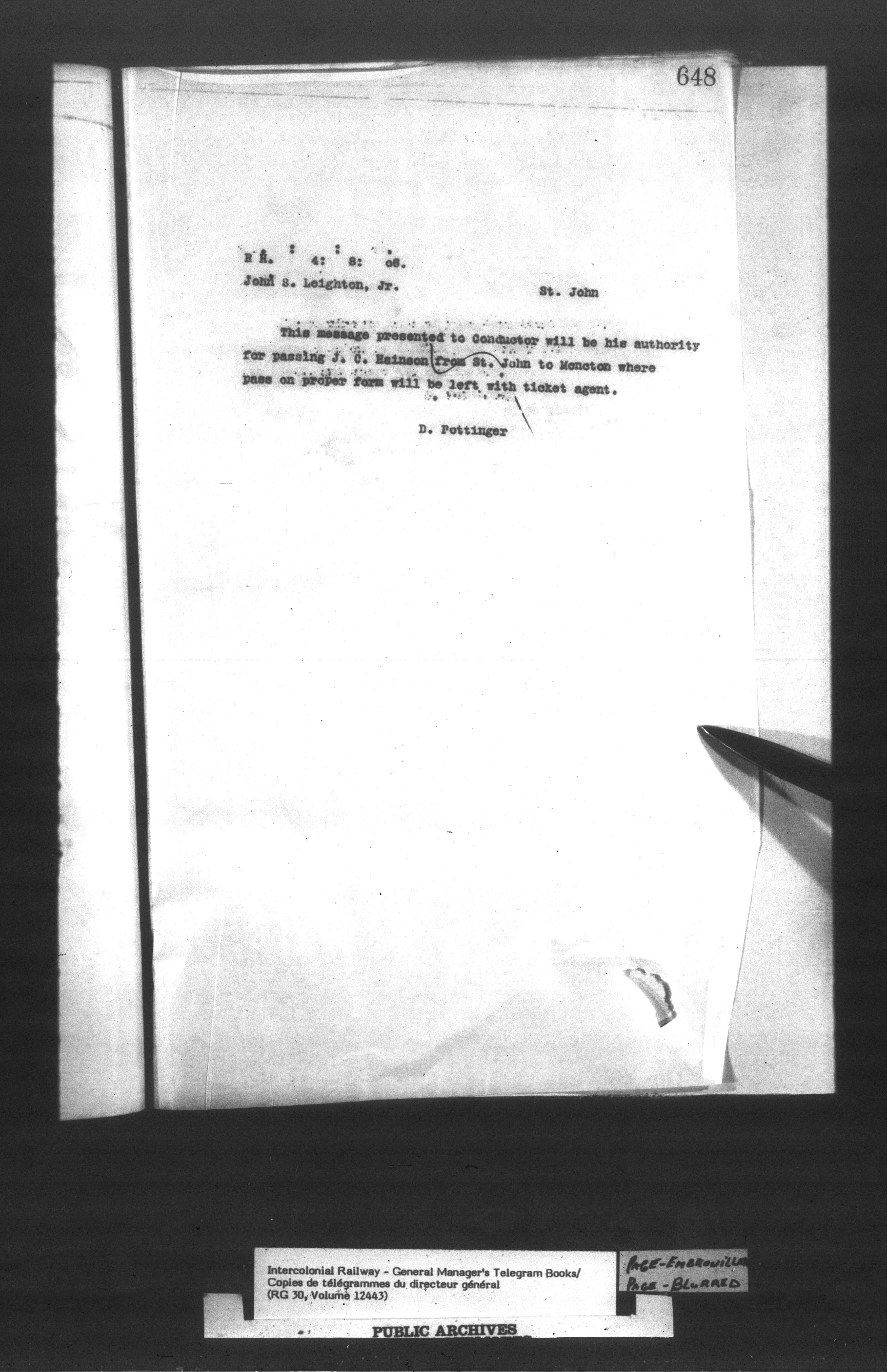 Canadian Government Railways : Office of the General Manager, Copies of telegrams - 13440