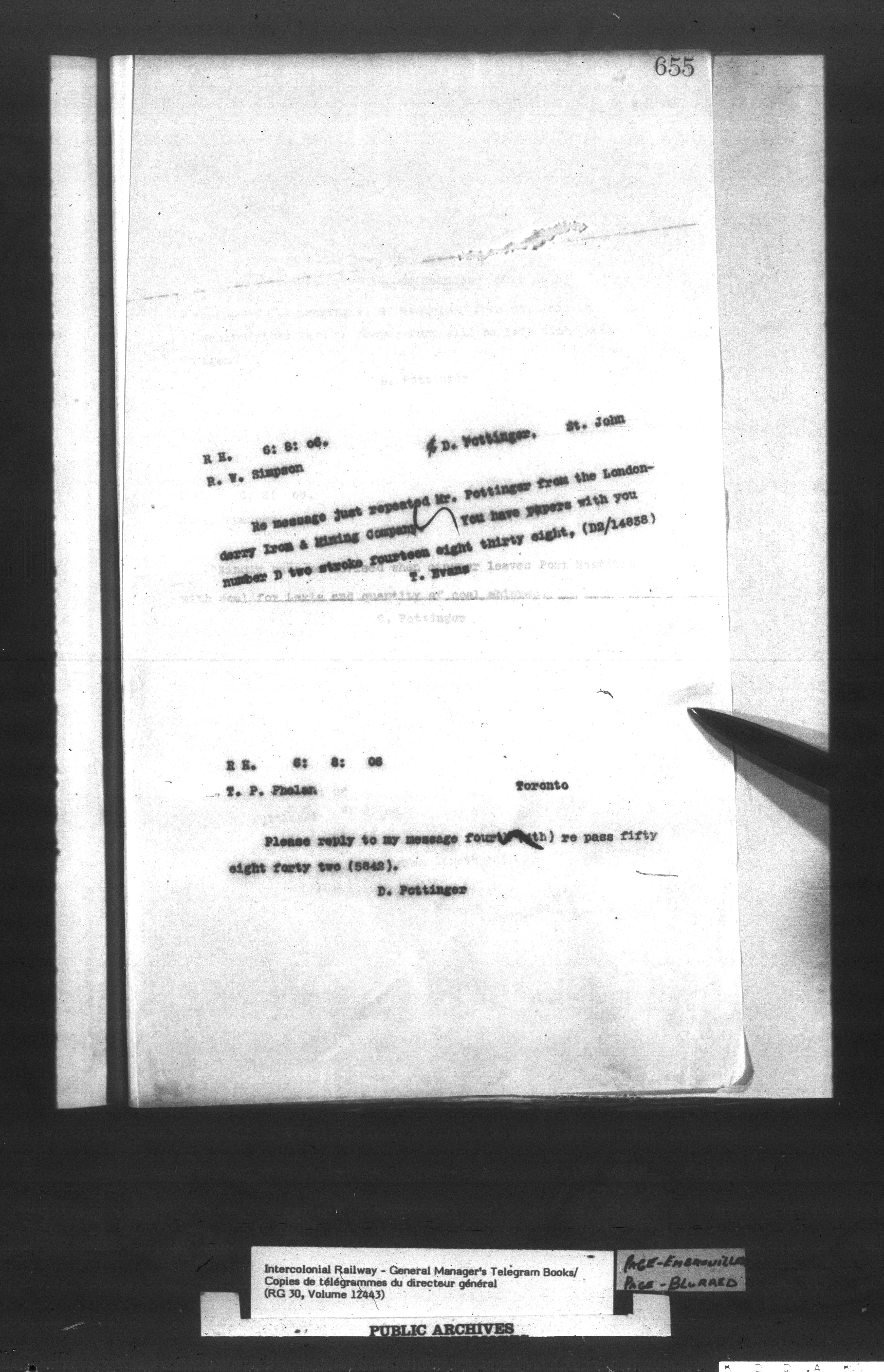 Canadian Government Railways : Office of the General Manager, Copies of telegrams - 13440