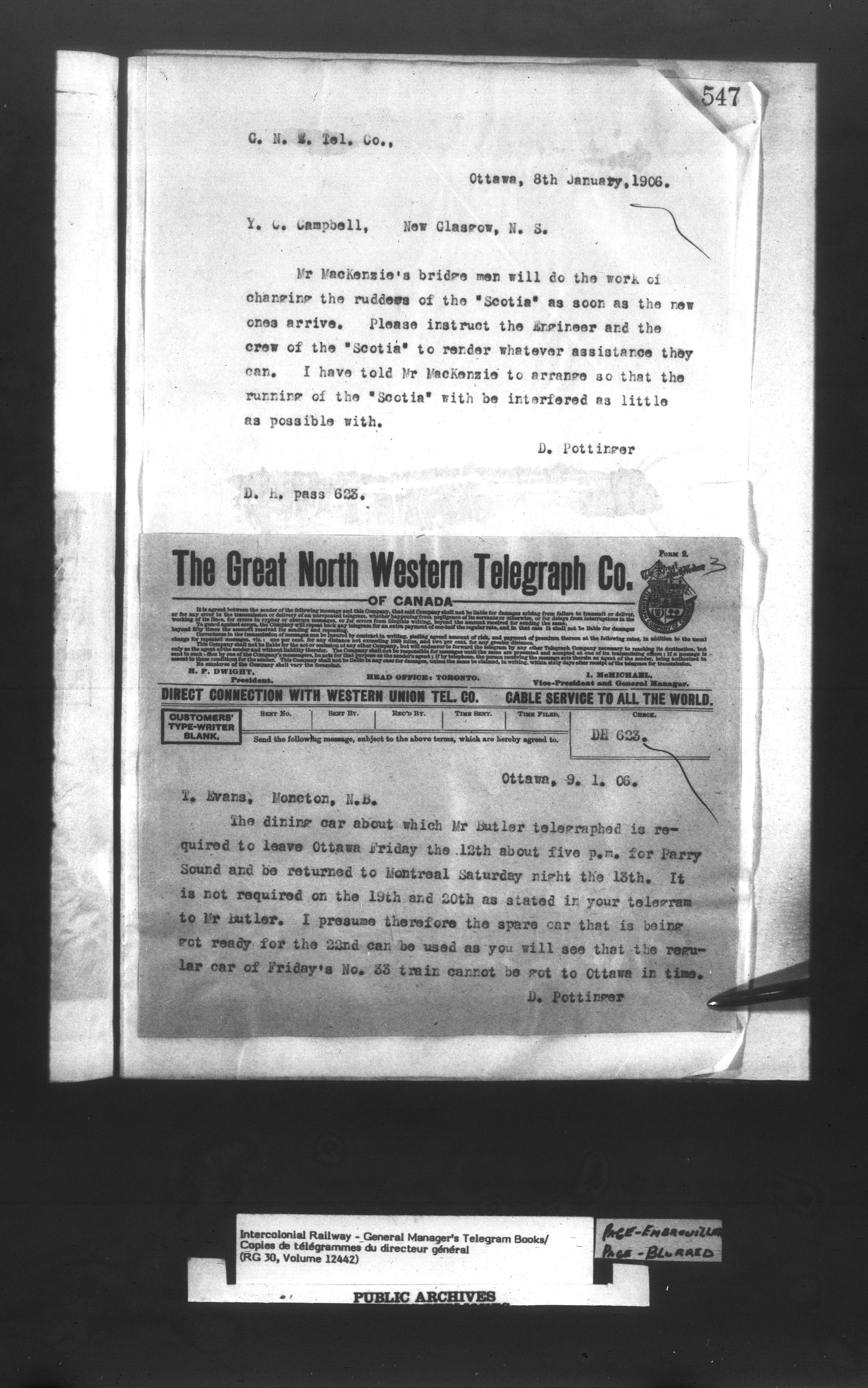 Canadian Government Railways : Office of the General Manager, Copies of telegrams - 13440
