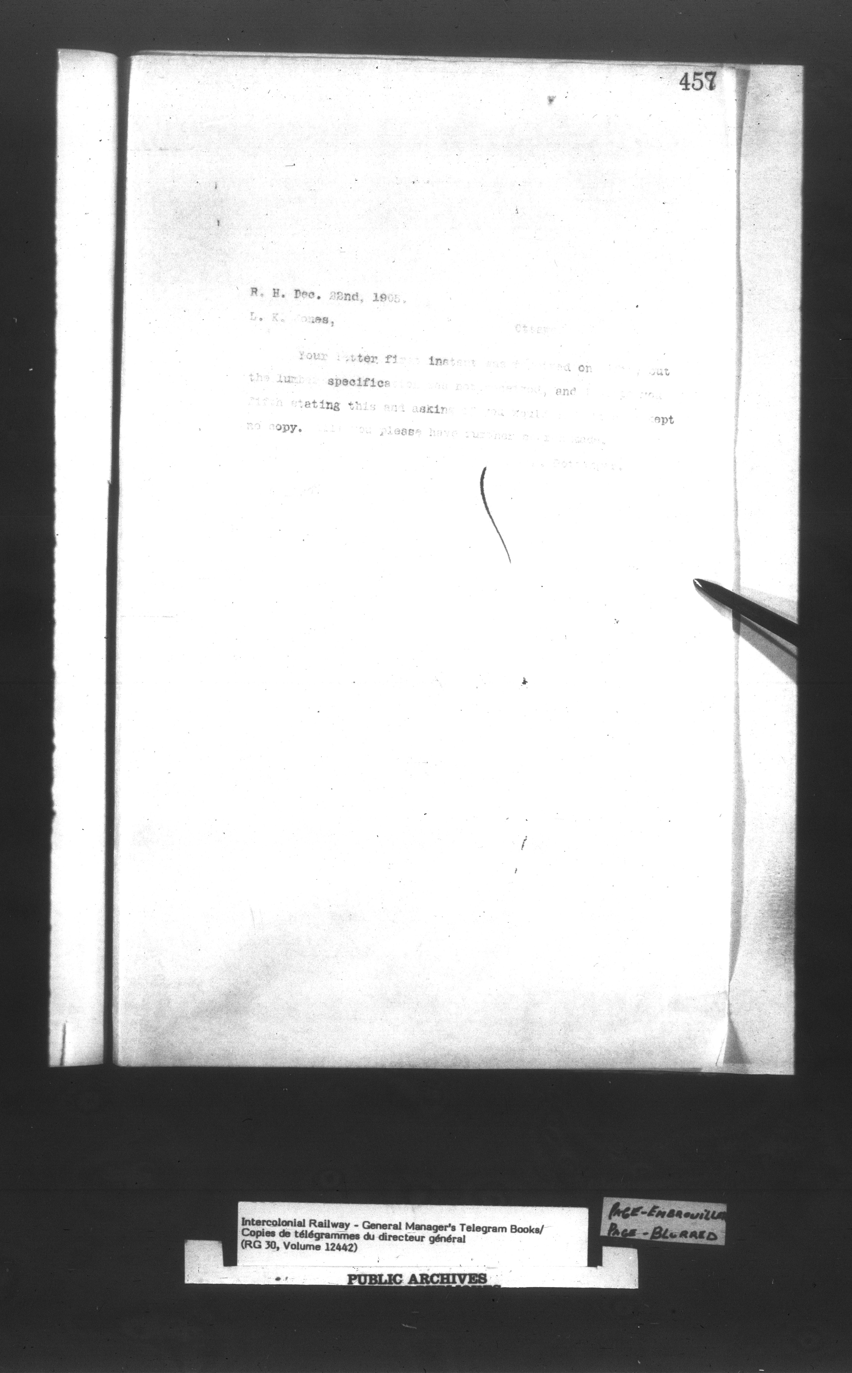 Canadian Government Railways : Office of the Chief Superintendent, Outward correspondence : C-13440