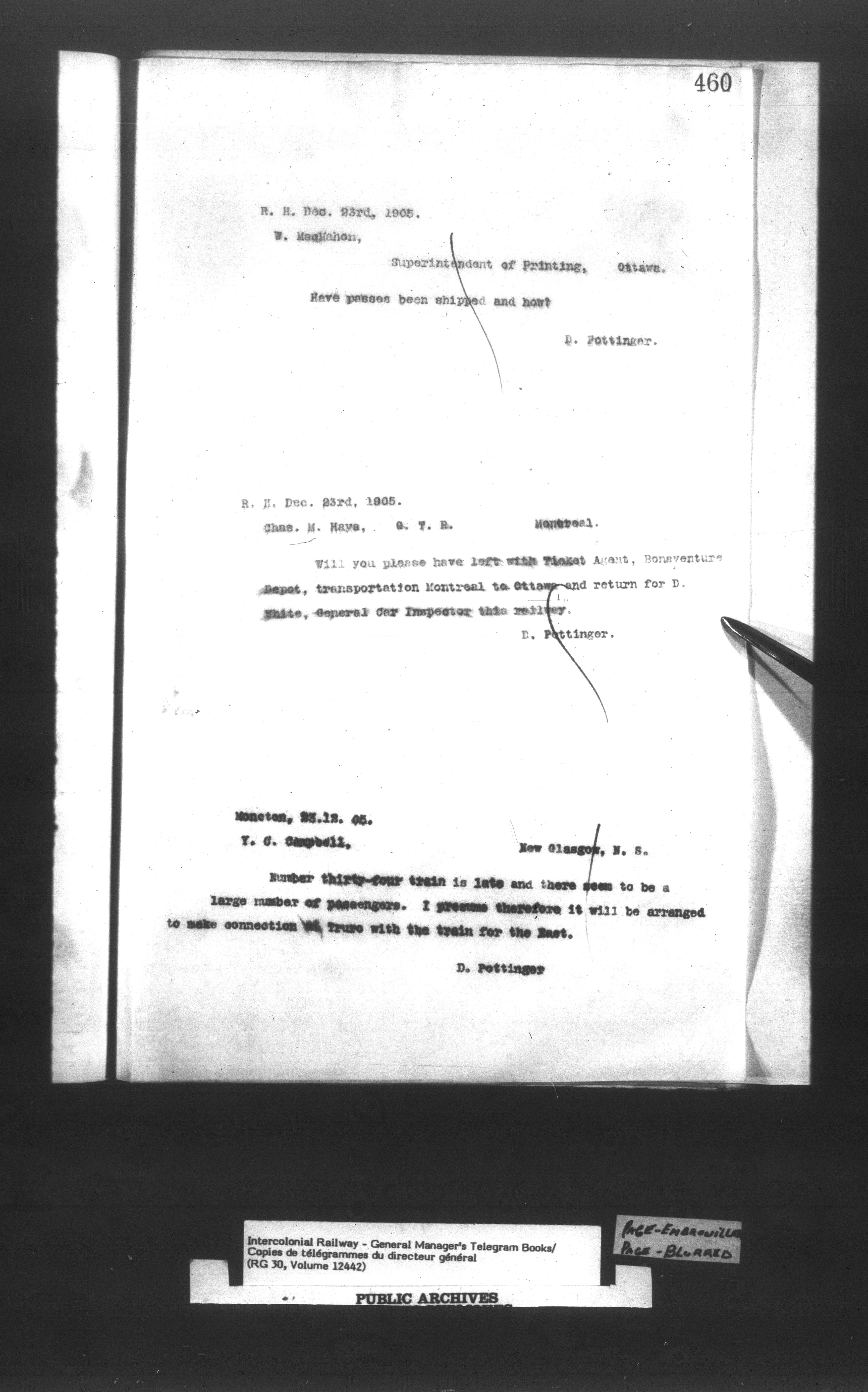 Canadian Government Railways : Office of the General Manager, Copies of telegrams - 13440