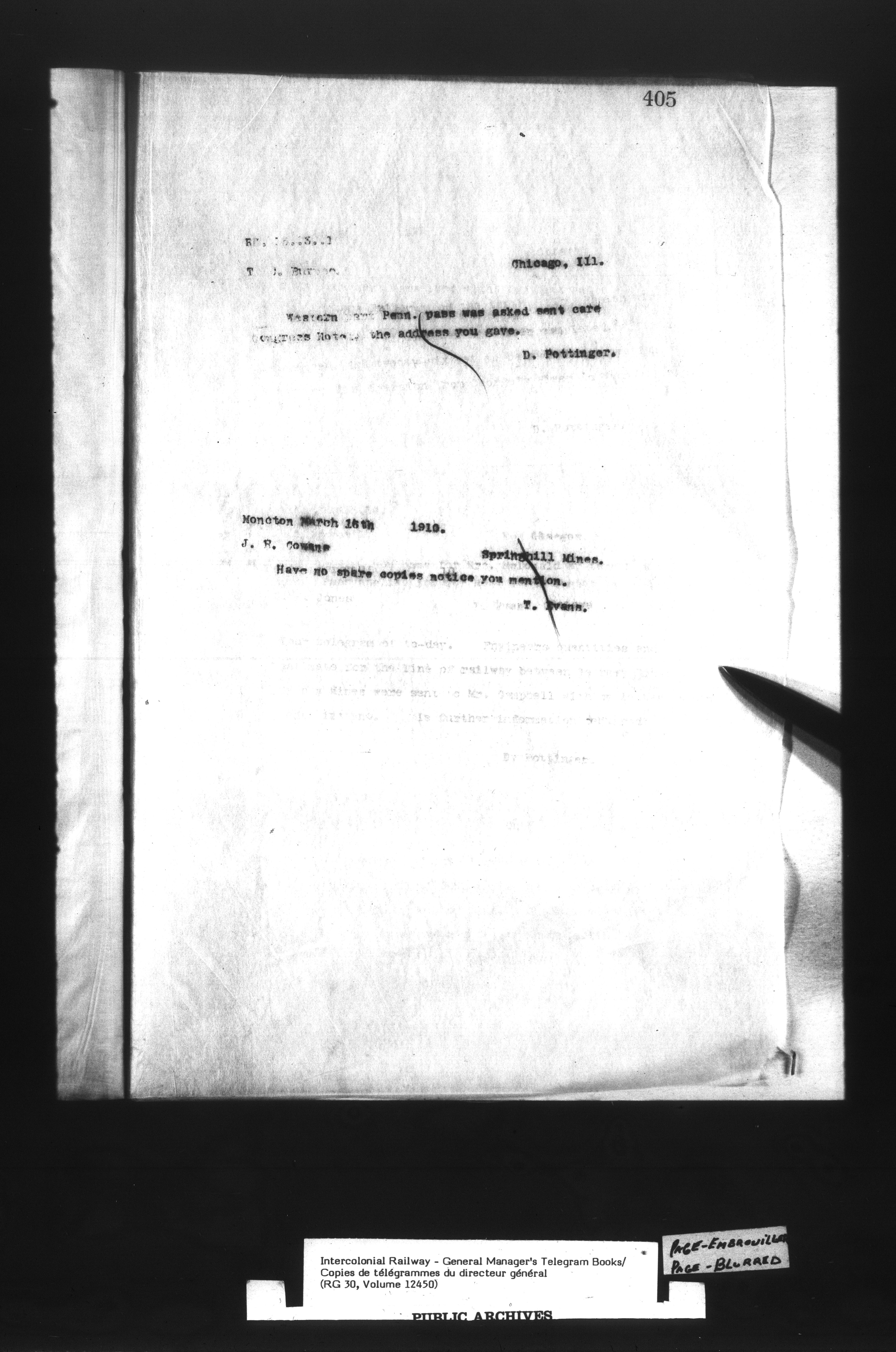 Canadian Government Railways : Office of the General Manager, Copies of telegrams - 13444