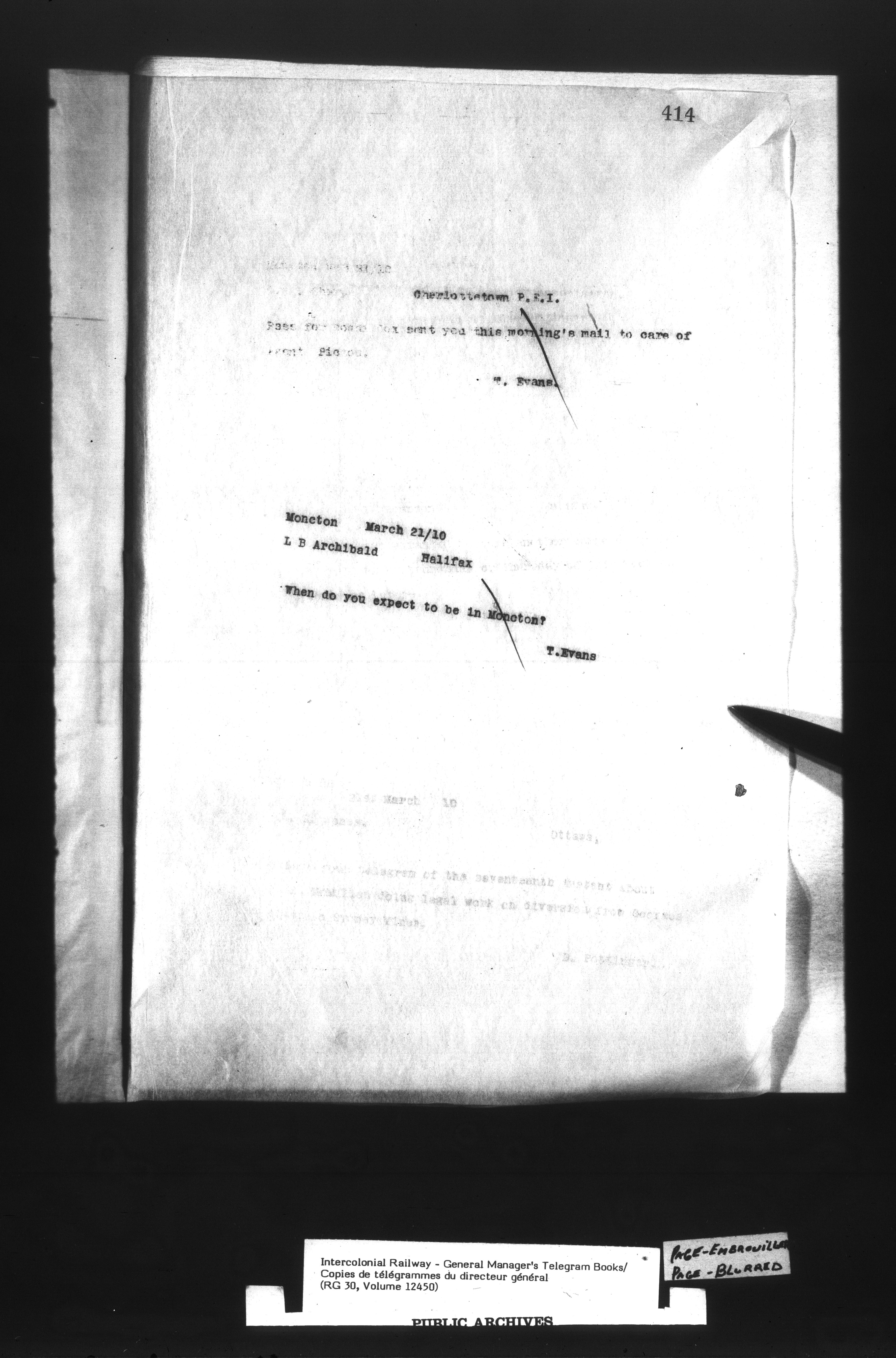 Canadian Government Railways : Office of the General Manager, Copies of telegrams - 13444