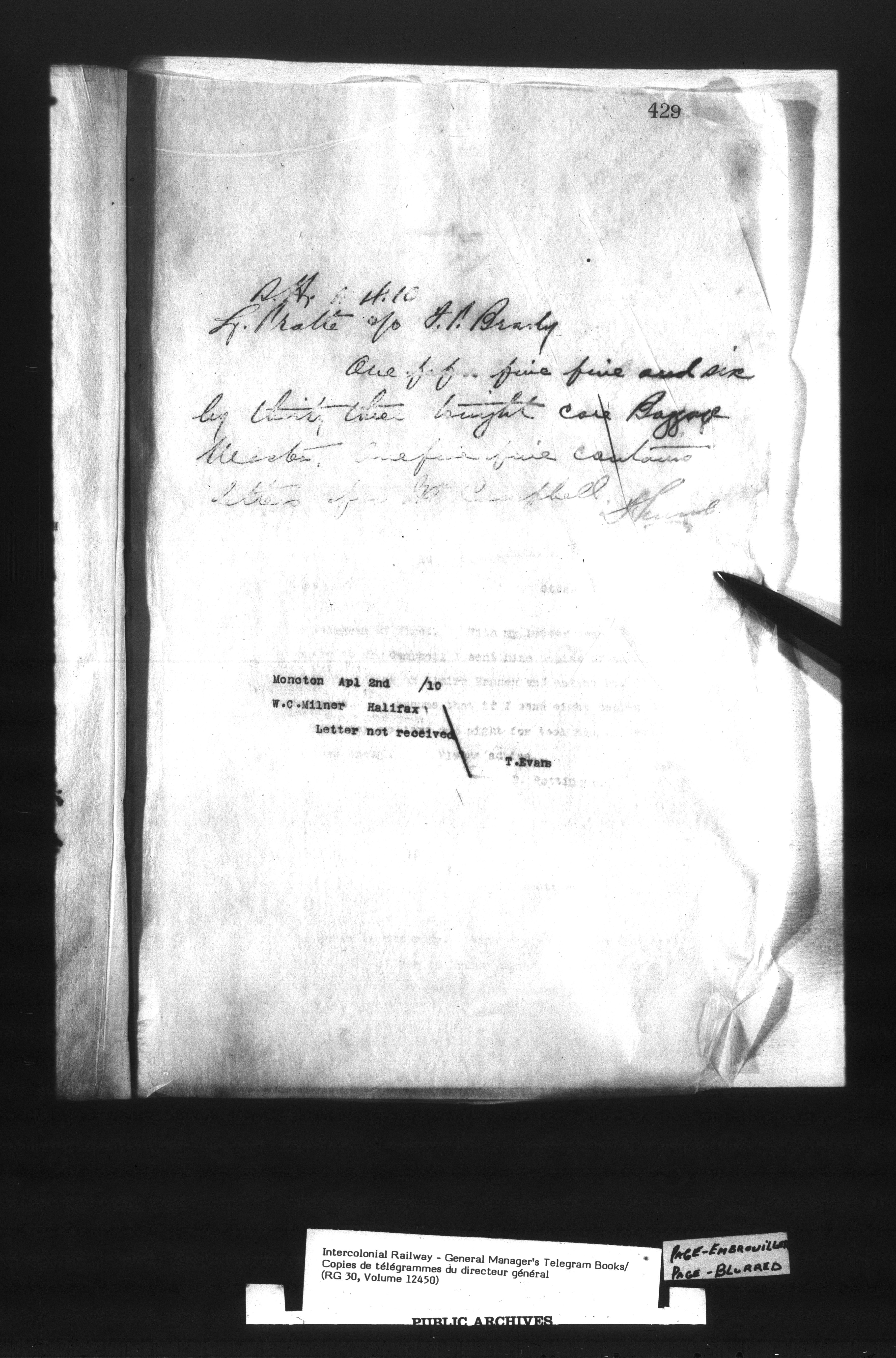 Canadian Government Railways : Office of the General Manager, Copies of telegrams - 13444