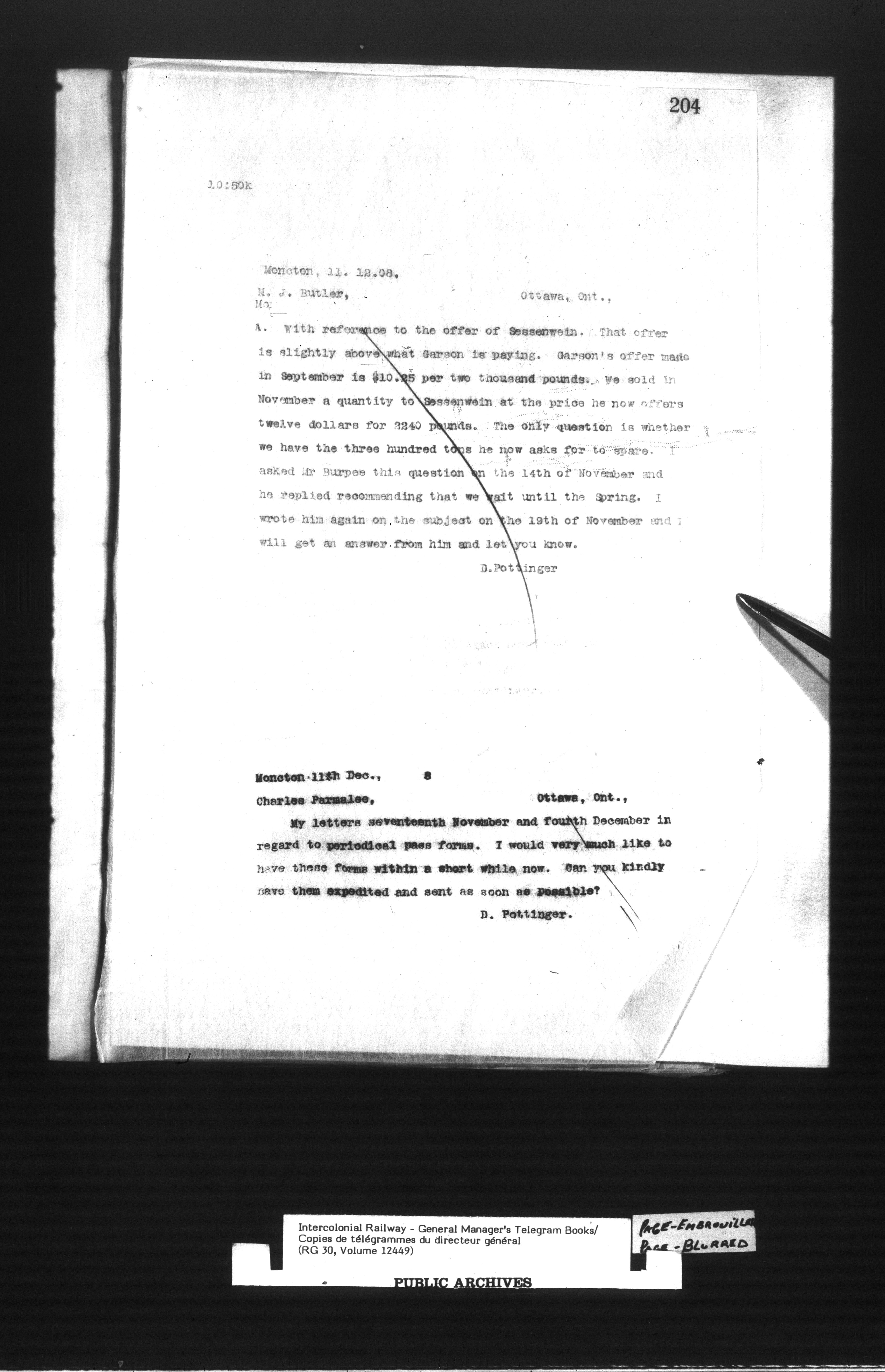 Canadian Government Railways : Office of the General Manager, Copies of telegrams - 13444