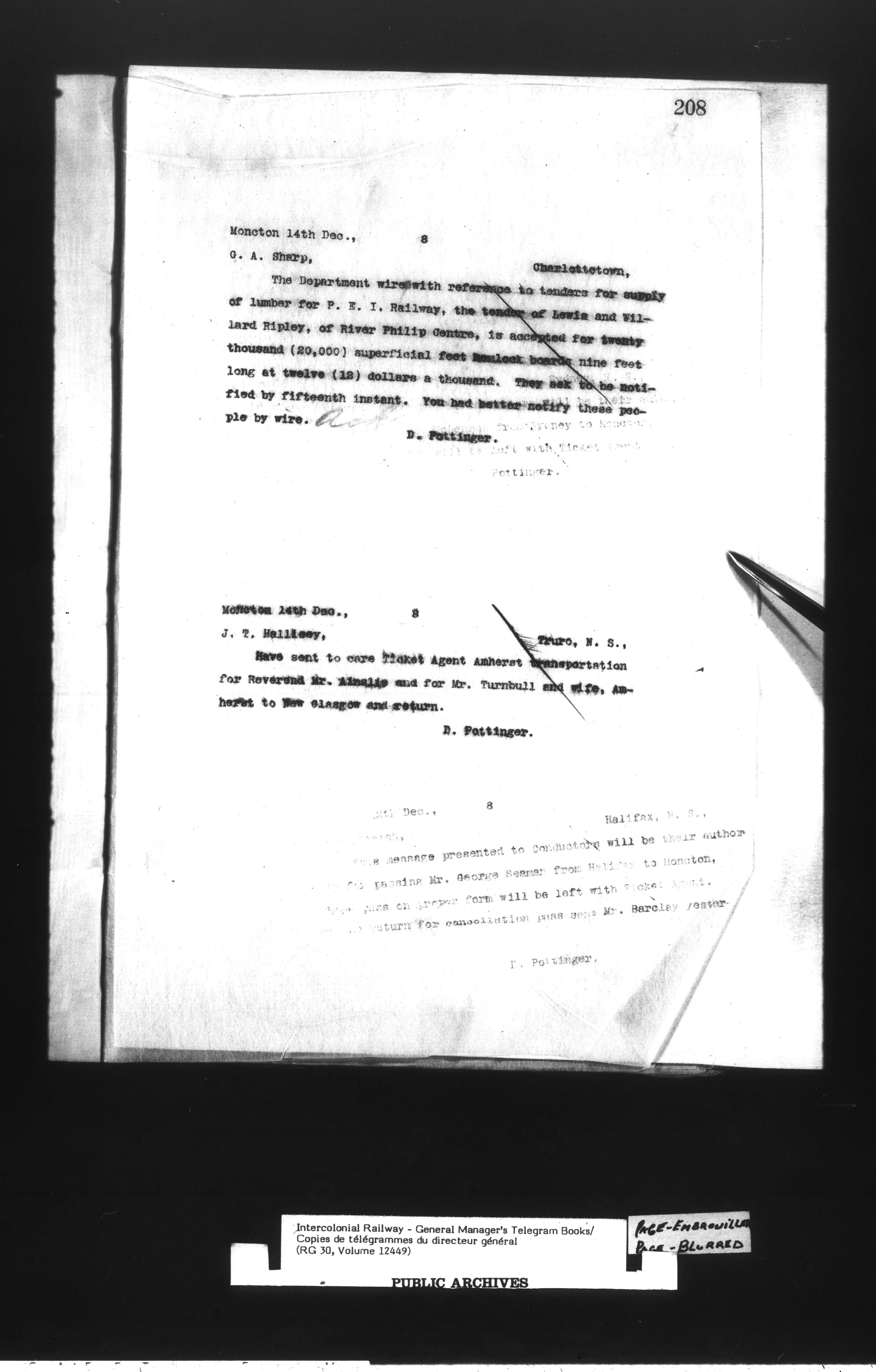 Canadian Government Railways : Office of the General Manager, Copies of telegrams - 13444